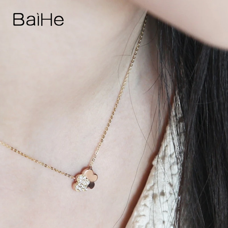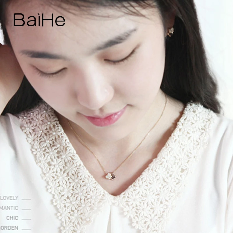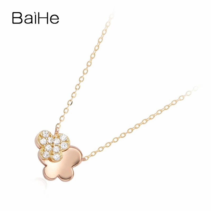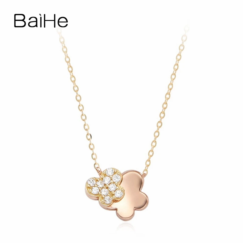 BAIHE Solid 18K Yellow & Rose Gold 0.10CT Certified Round 100% Genuine Natural Diamonds Women Engagement Fine Jewelry Necklaces