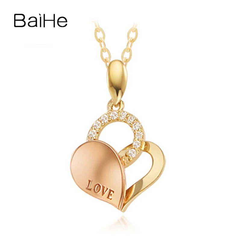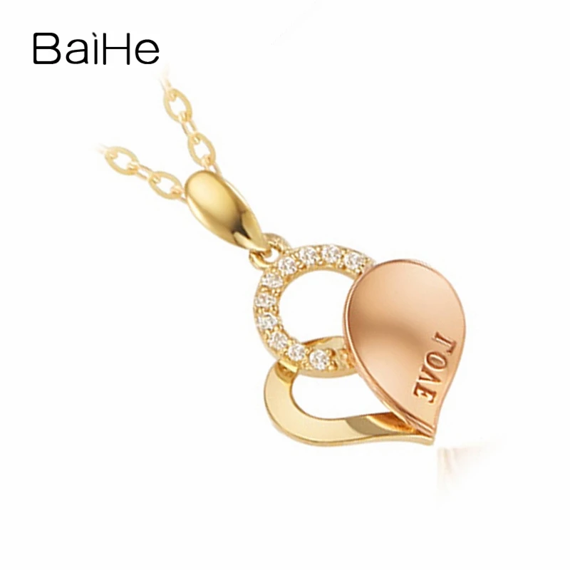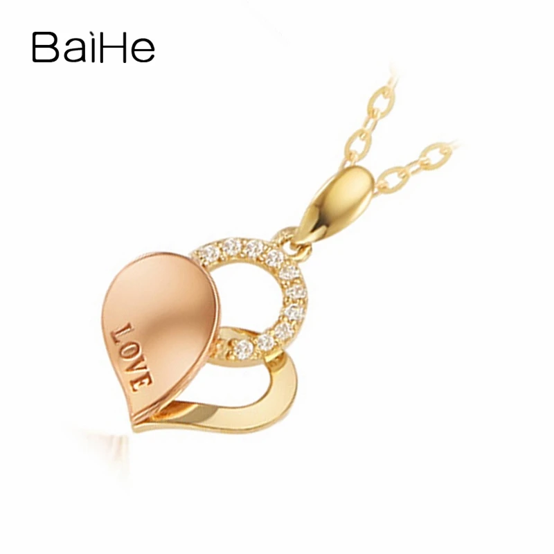 BAIHE Solid 18K Yellow & Rose Gold 0.10ct Certified Round 100% Genuine Natural Diamonds Women Party Fine Jewelry Gift Necklaces