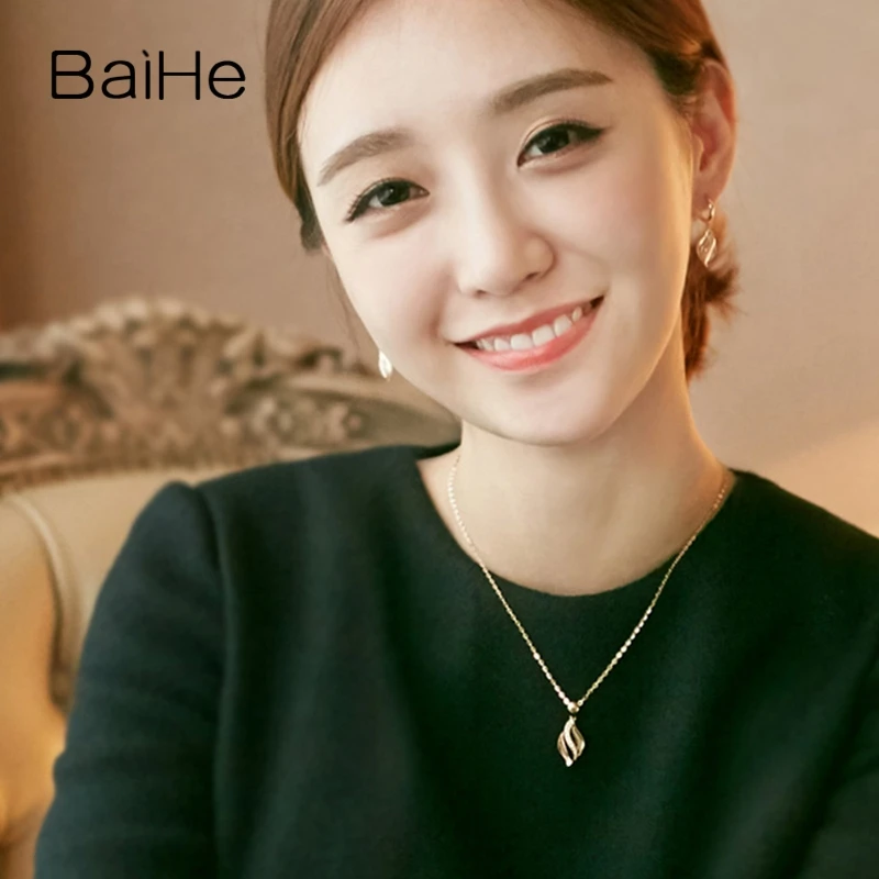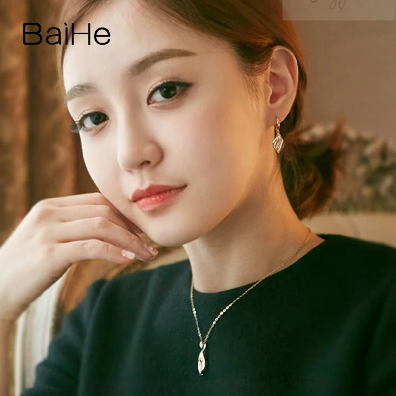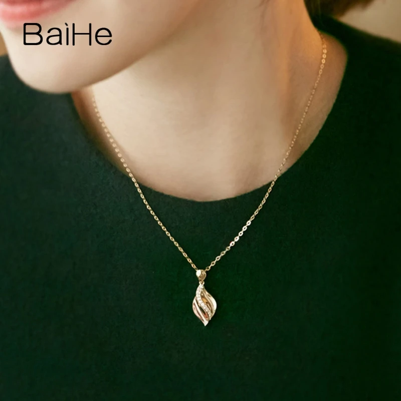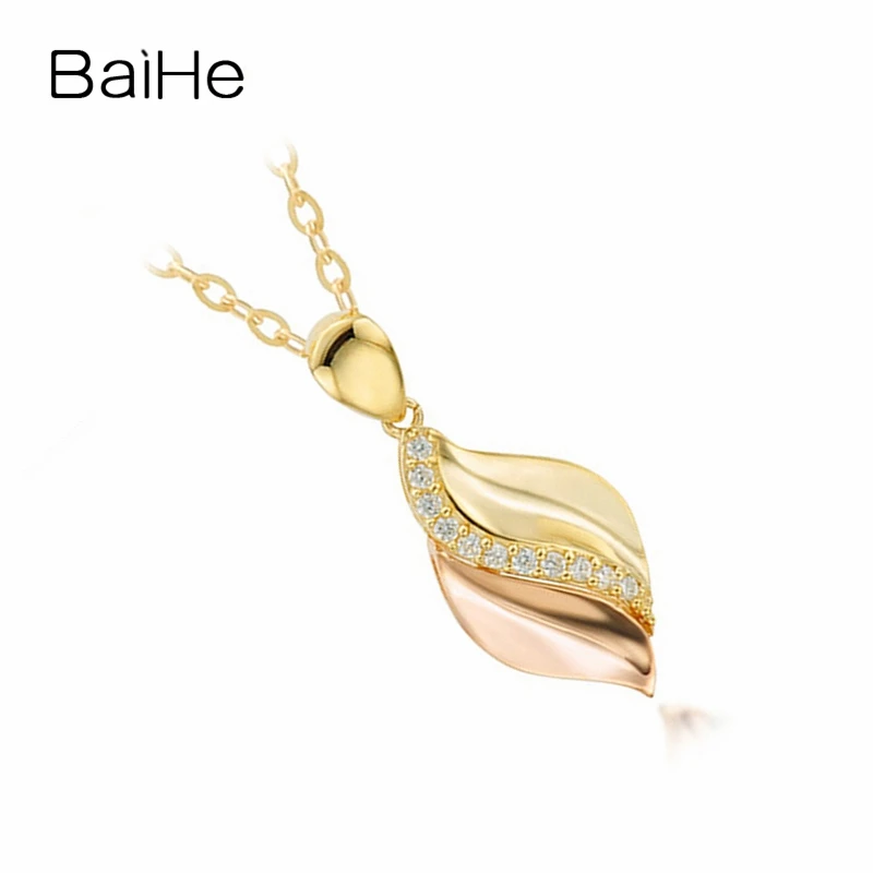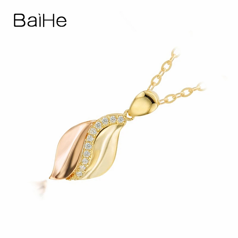 BAIHE Solid 18K Yellow & Rose Gold 0.11ct Certified Round 100% Genuine Natural Diamonds Women Party Fine Jewelry Gift Necklaces