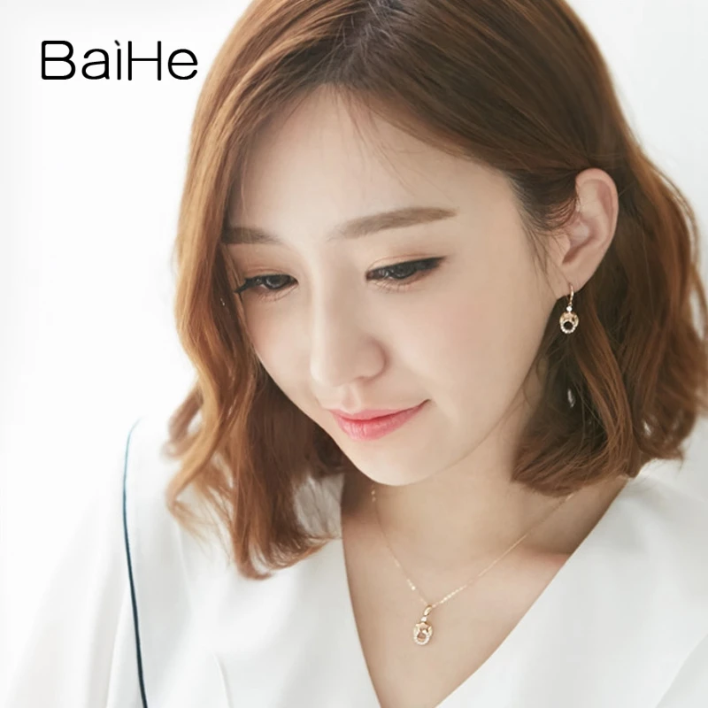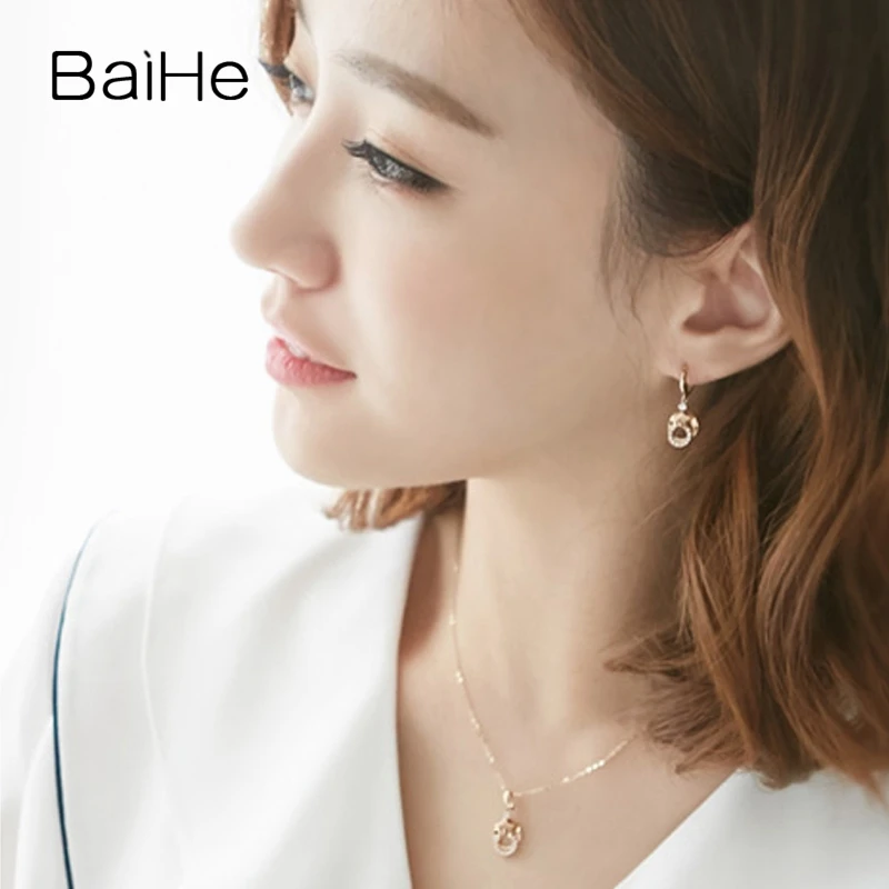 BAIHE Solid 18K Yellow & Rose Gold 0.12ct Certified Round cut 100% Genuine Natural Diamonds Women Wedding Fine Jewelry Necklaces