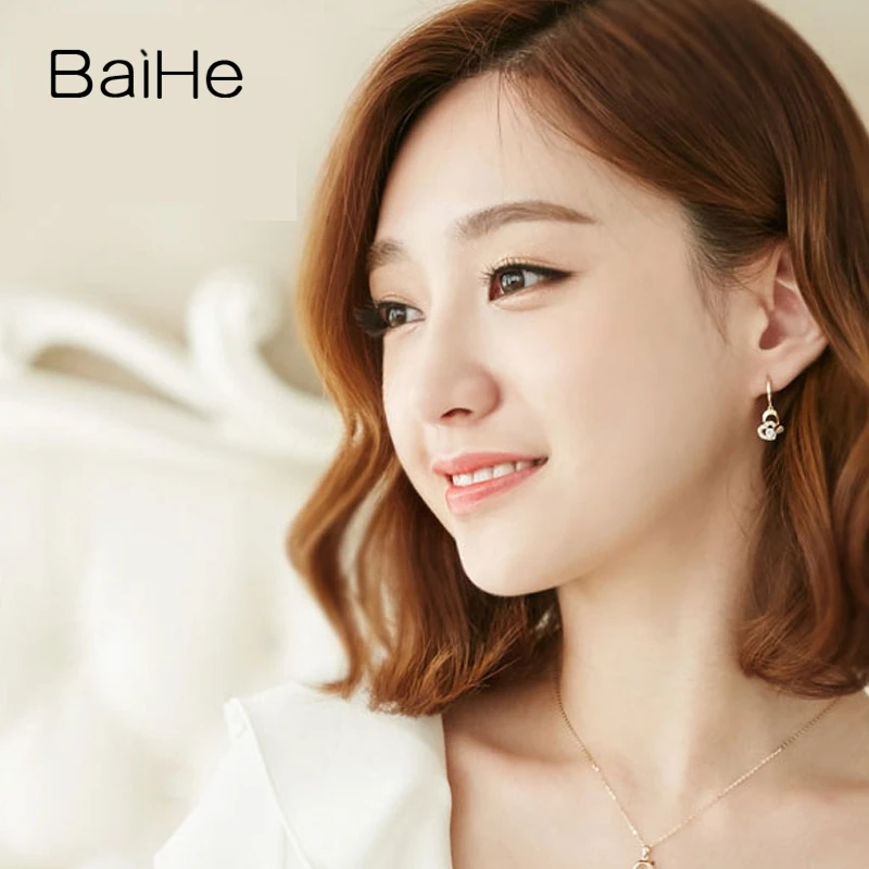 BAIHE Solid 18K Yellow & Rose Gold 0.20ct Certified Round 100% Genuine Natural Diamonds Women Engagement Fine Jewelry Necklaces