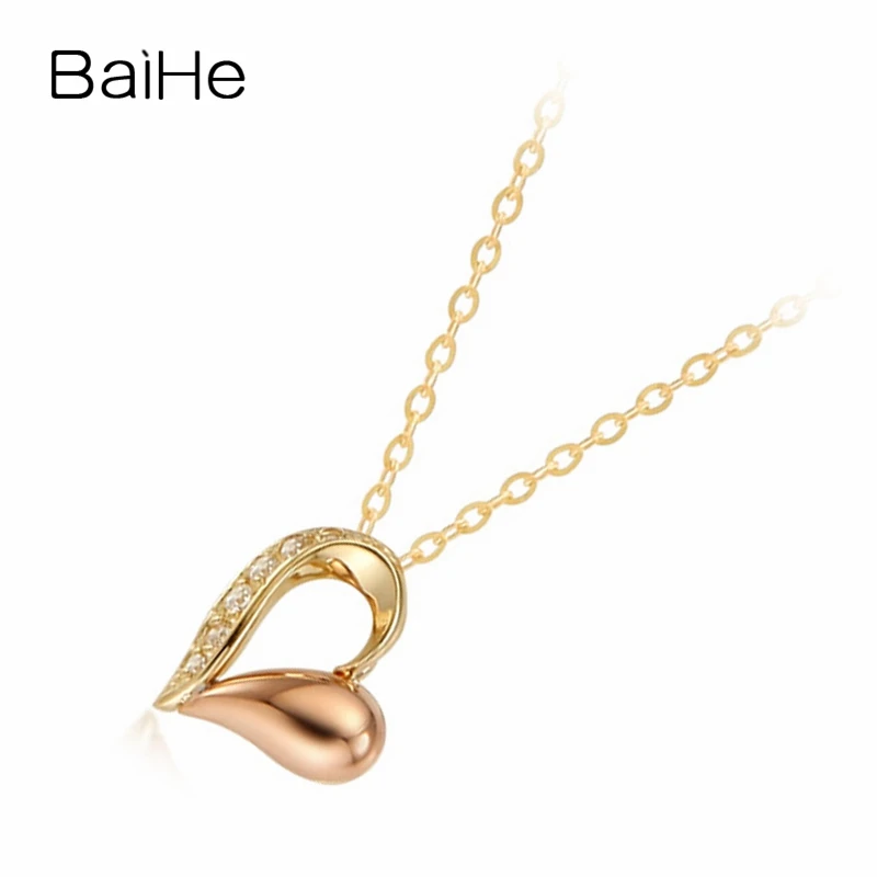 BAIHE Solid 18K Yellow & Rose Gold 0.29ct Certified Round cut 100% Genuine Natural Diamonds Women Wedding Jewelry Gift Necklaces