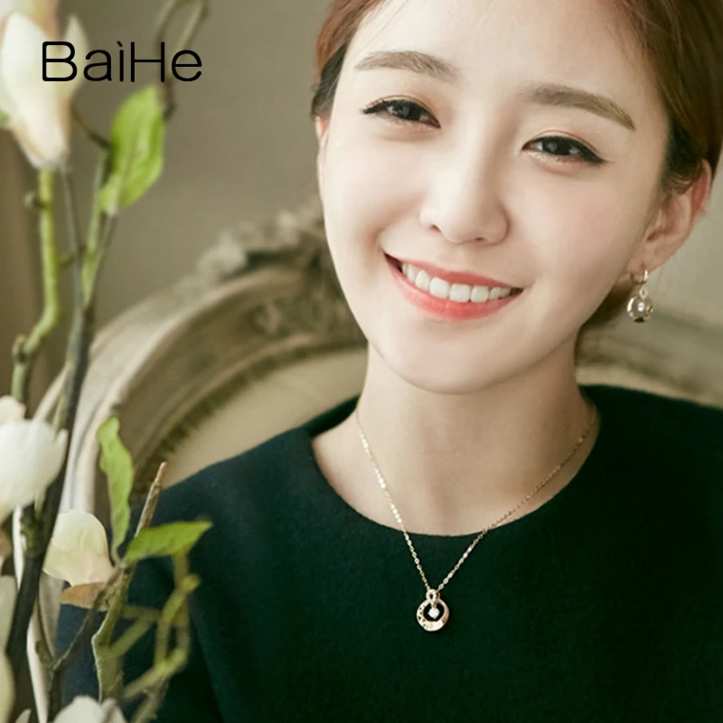 BAIHE Solid 18K Yellow & Rose Gold 0.34ct Certified Round 100% Genuine Natural Diamonds Women Engagement Fine Jewelry Necklaces