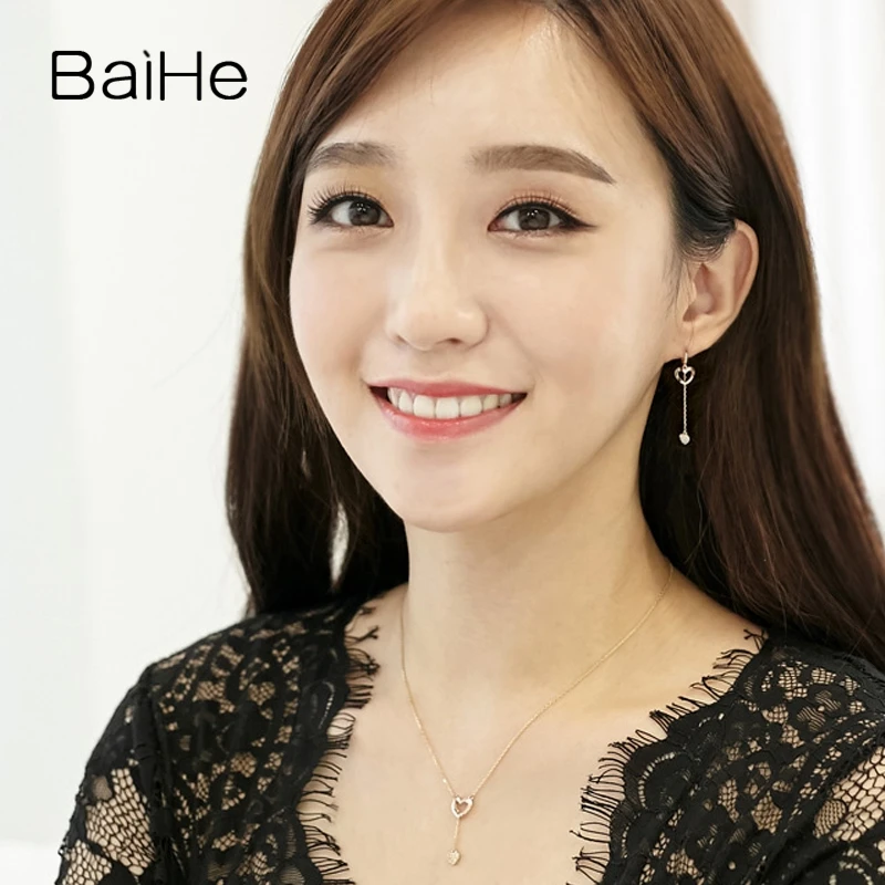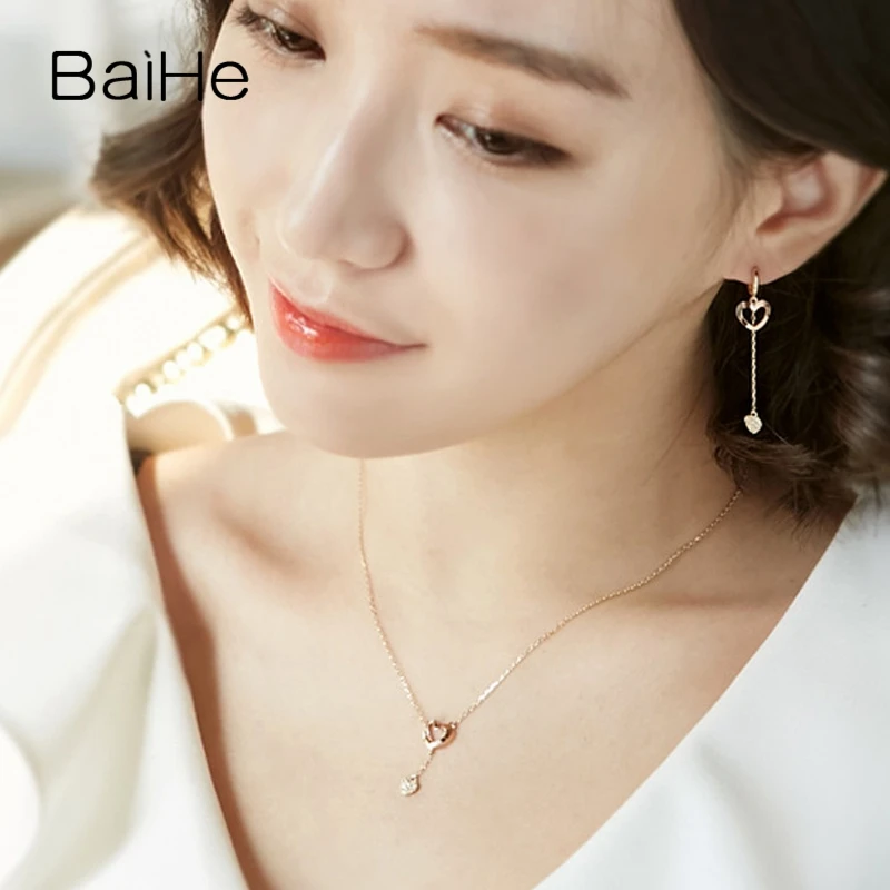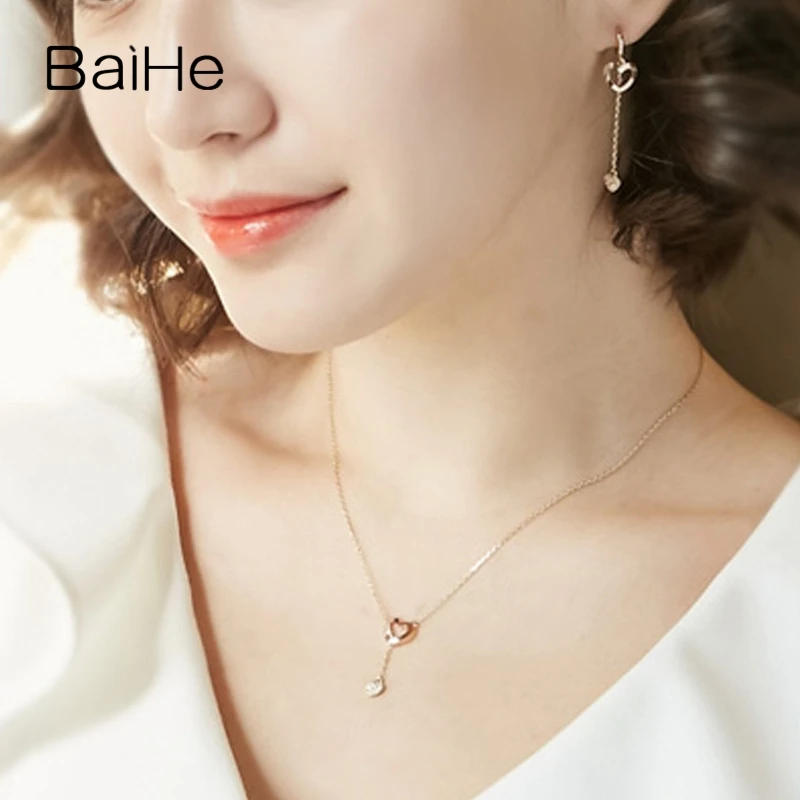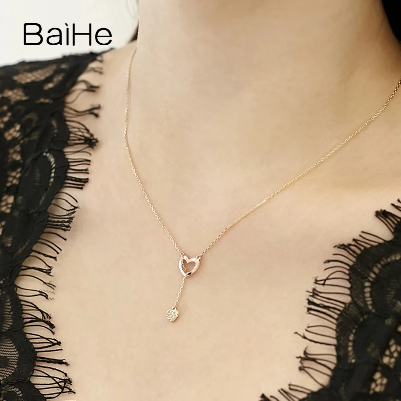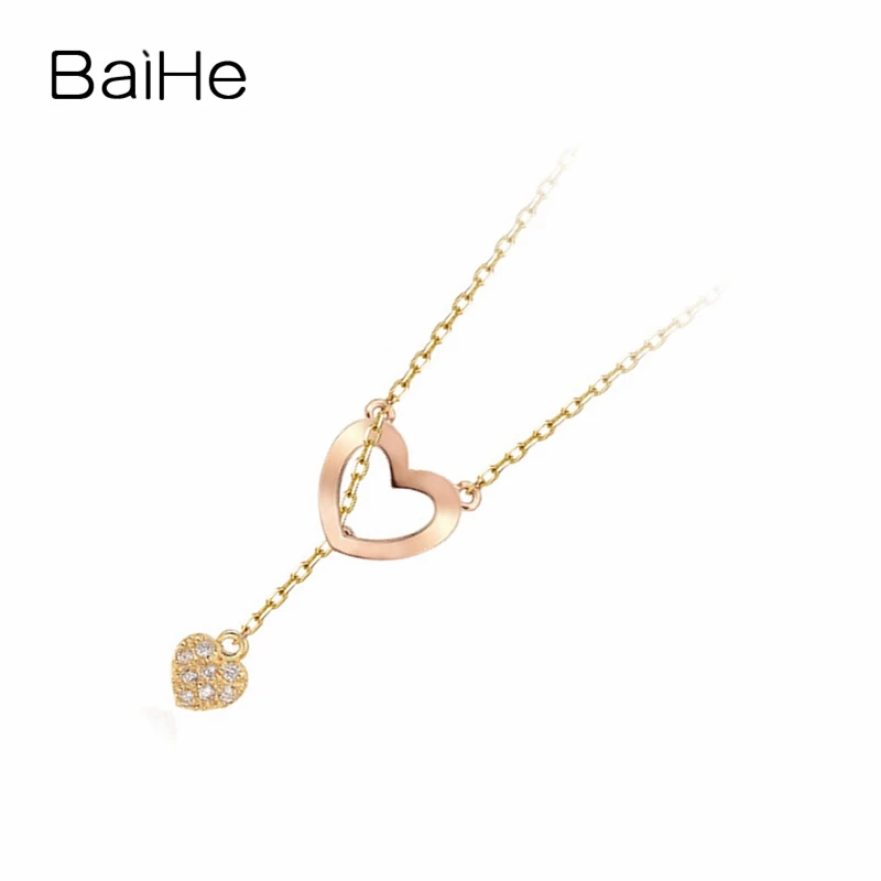 BAIHE Solid 18K Yellow & Rose Gold Certified 0.04ct Round 100% Genuine Natural Diamonds Wedding Cute/Romantic Jewelry Necklaces