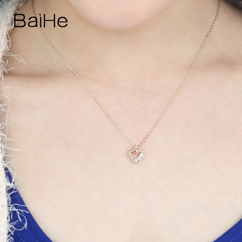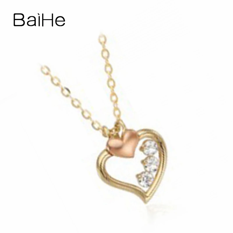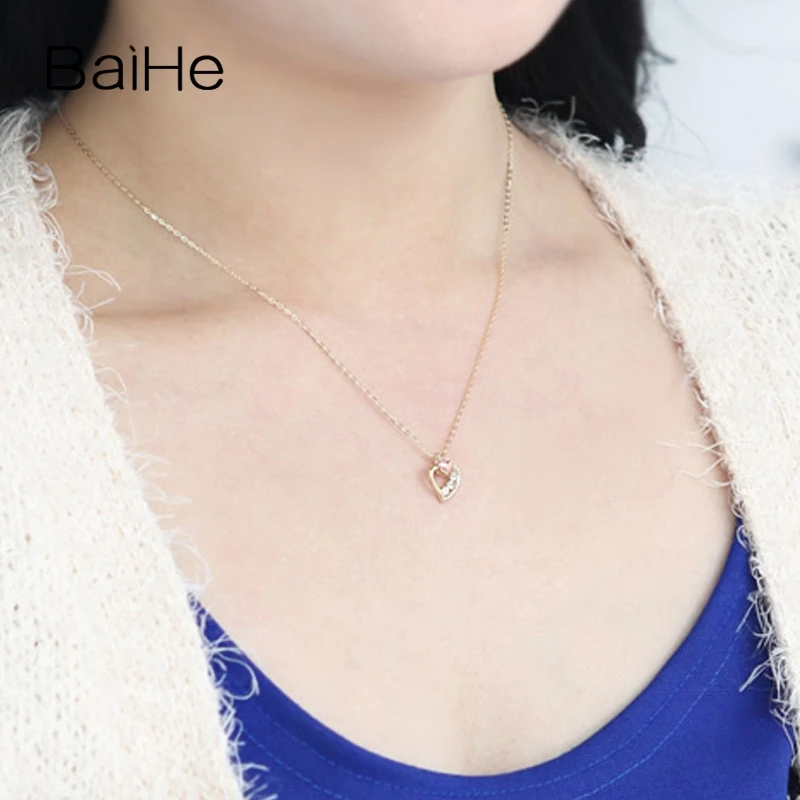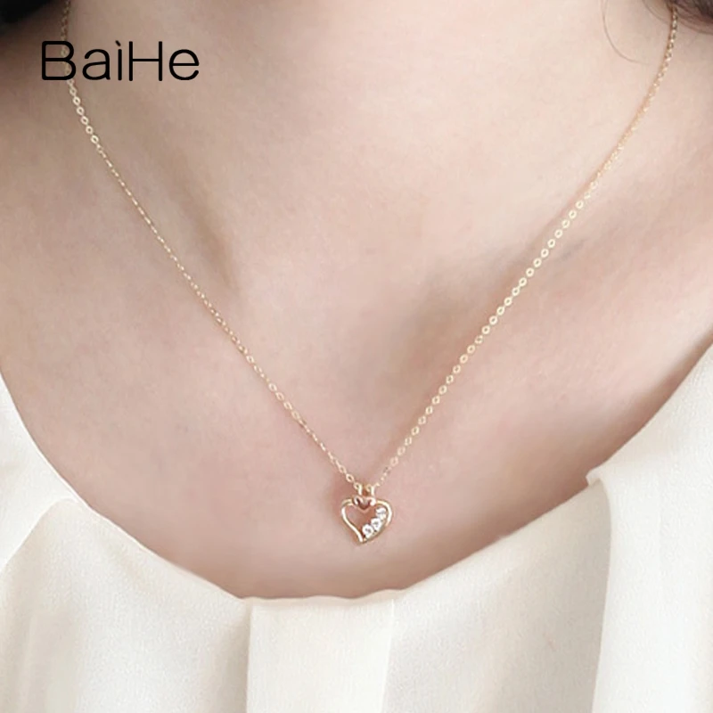 BAIHE Solid 18K Yellow & Rose Gold Certified 0.09ct Round Genuine Natural Diamonds Engagement Trendy Fine Jewelry Gift Necklaces