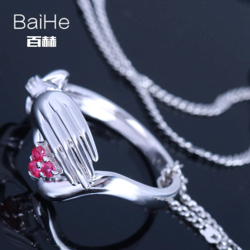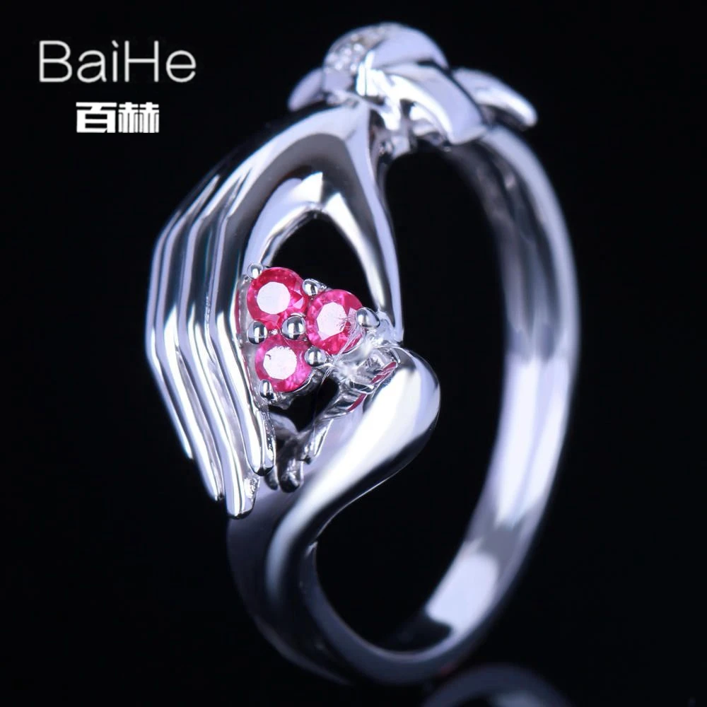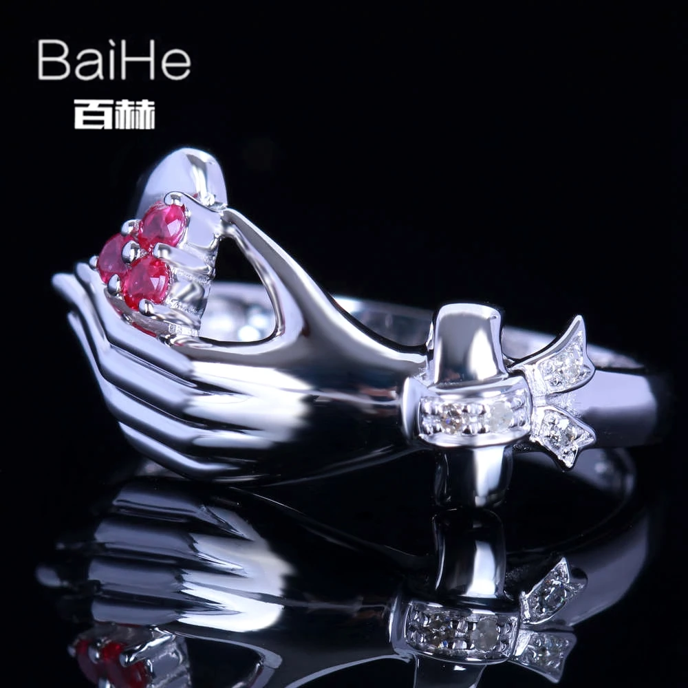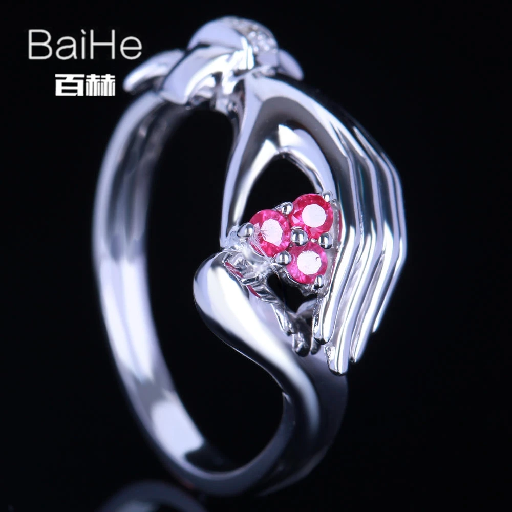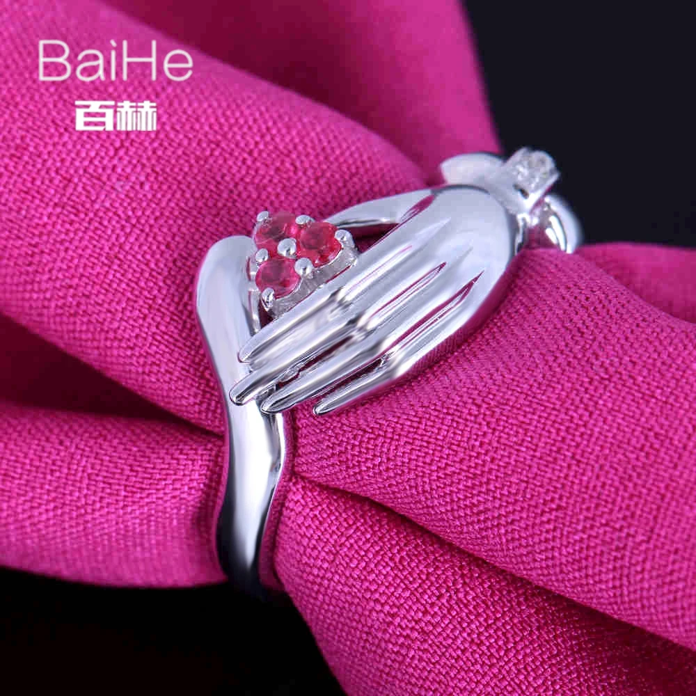 BAIHE Sterling Silver 925 0.15CT Certified H/SI 100% Genuine Natural Diamonds & Rubies Women Classic Fine Jewelry Ring