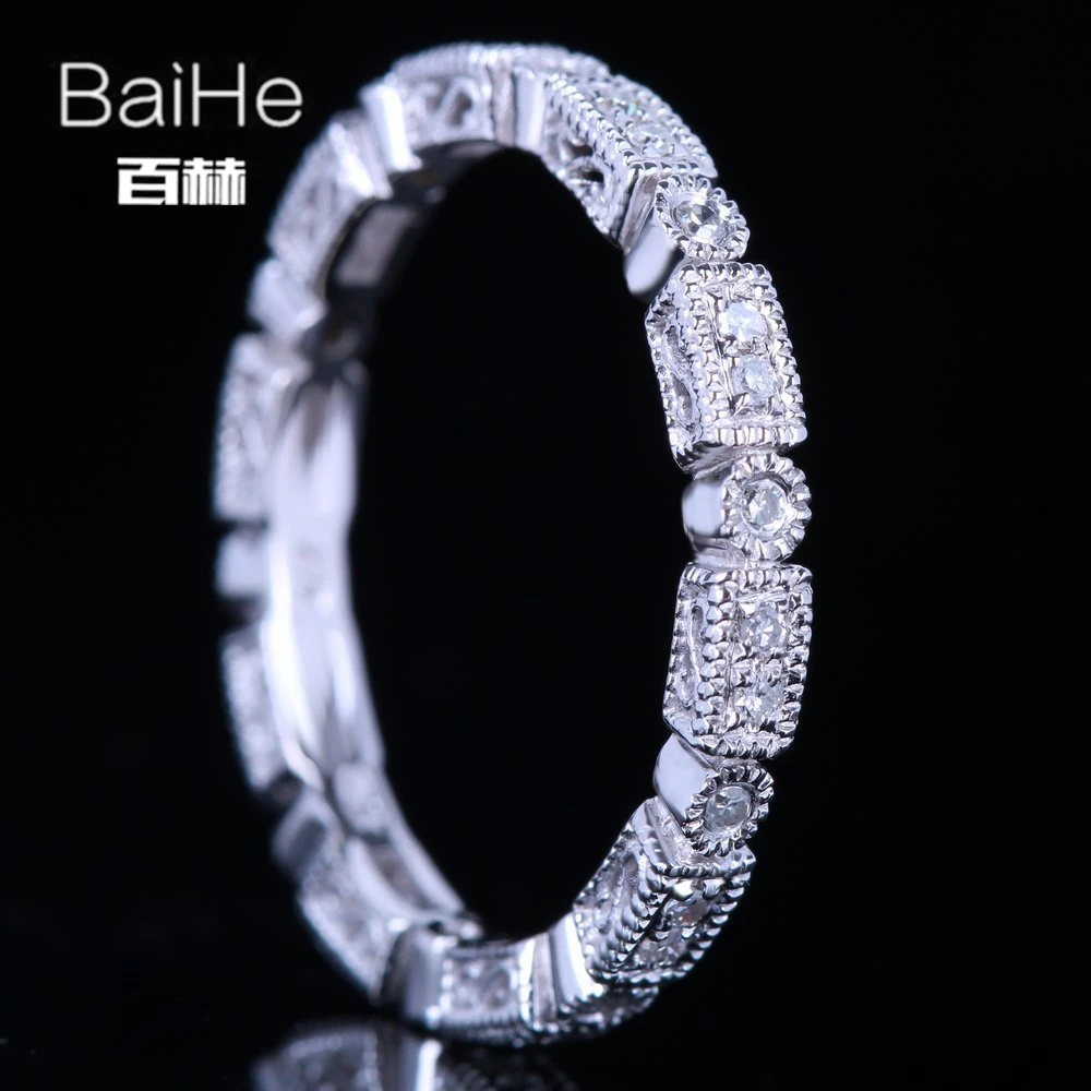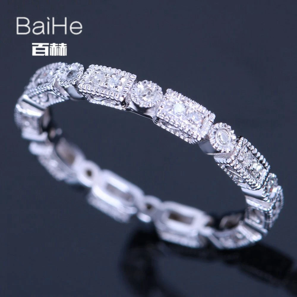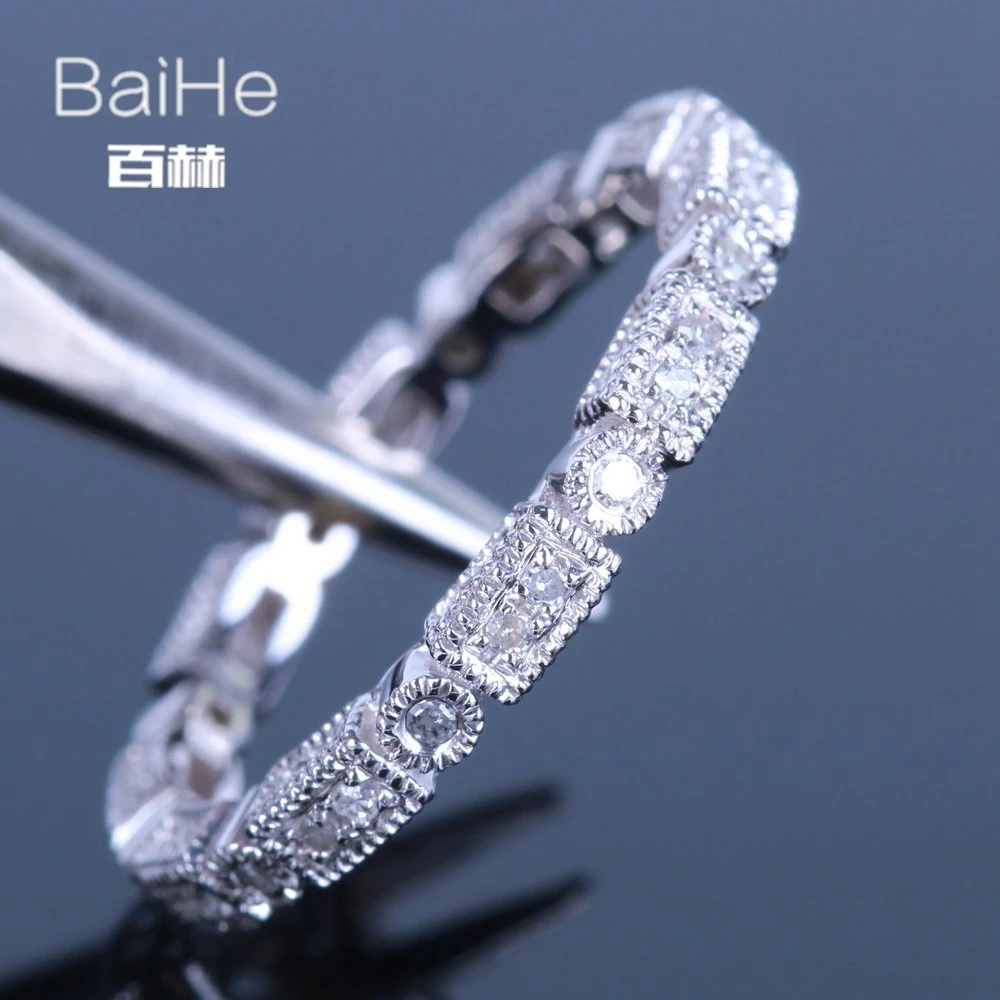 BAIHE Sterling Silver 925 0.2CT Certified H/SI3 Round Genuine Natural Diamonds Wedding Women Office/career Fine Jewelry Ring
