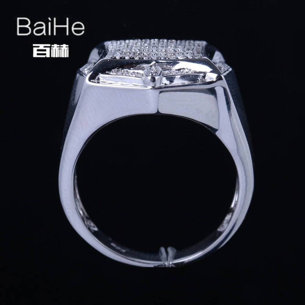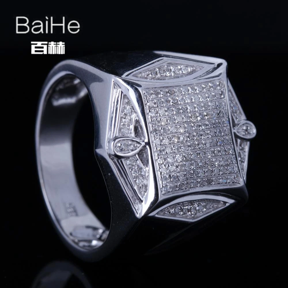 BAIHE Sterling Silver 925 0.6CT Certified H/I Round Cut Genuine Natural Diamonds Wedding Men Trendy Fine Jewelry Ring