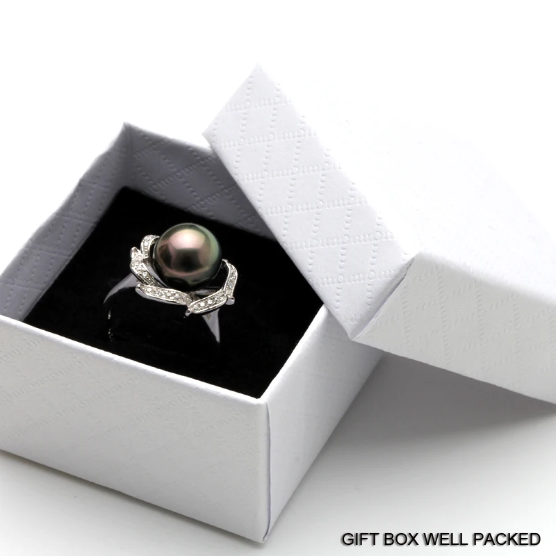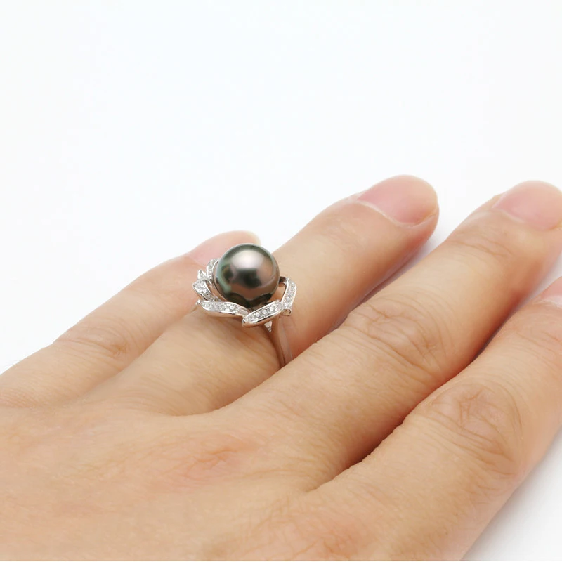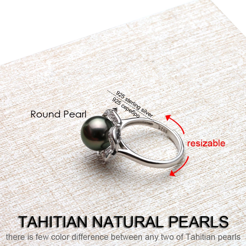 Black Pearl Rings,Wedding Real Round Tahitian Natural Pearl Ring 925 Silver Jewelry Wife Anniversary Gift Mother Luxury