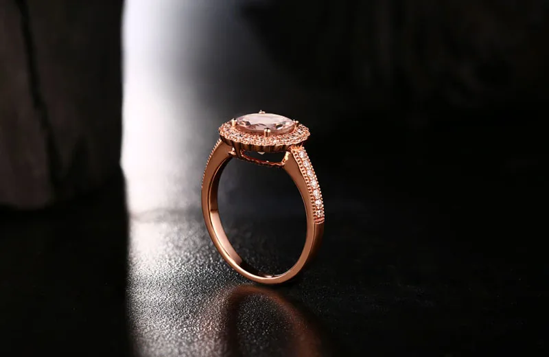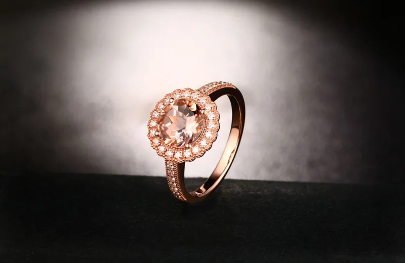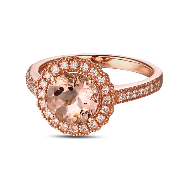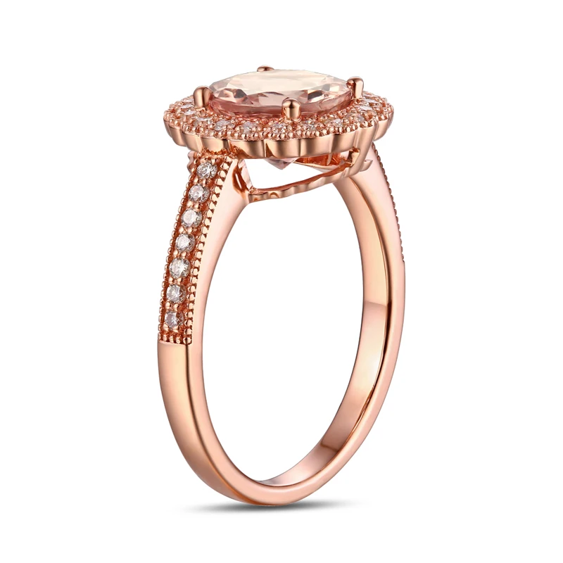 14KT/585 Rose Gold 0.29ct Round Cut Diamond 1.85ct Natural Morganite Engagement Ring Jewelry