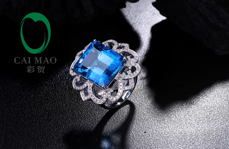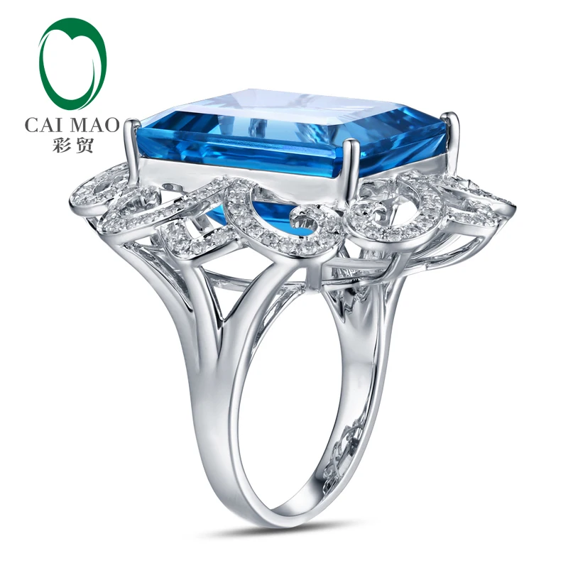 14KT/585 White Gold 22.68ct Natural Blue Topaz & 0.63 ct Round Cut Diamond Engagement Gemstone Ring Jewelry