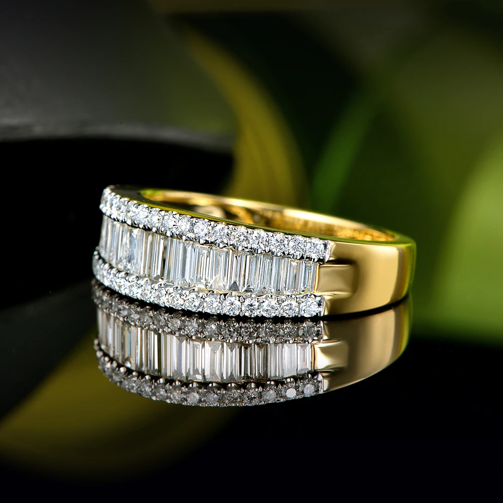 Half Eternity 1.1ctw Natural Round Baguette Diamond 14kt Yellow Gold Engagement Wedding Band Unisex