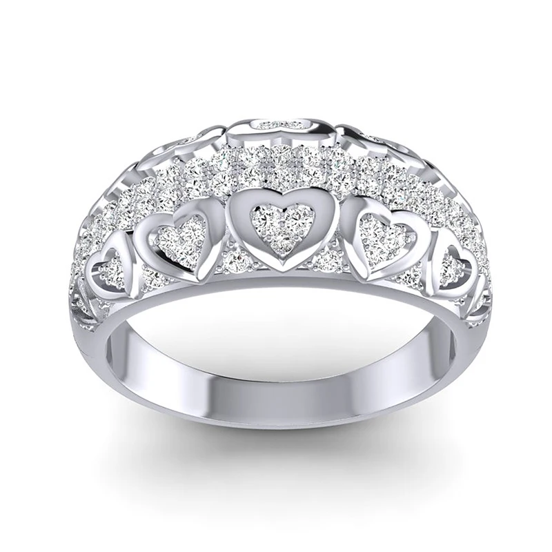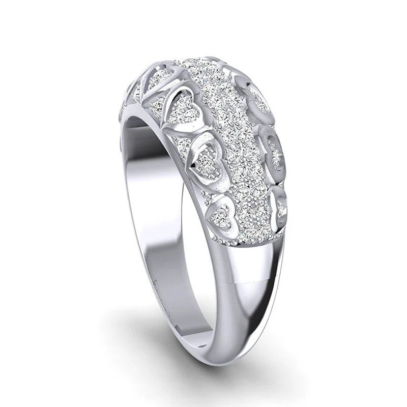 Pave Setting 14k White Gold Heart Cut moissanite Wedding Band Ring Jewelry