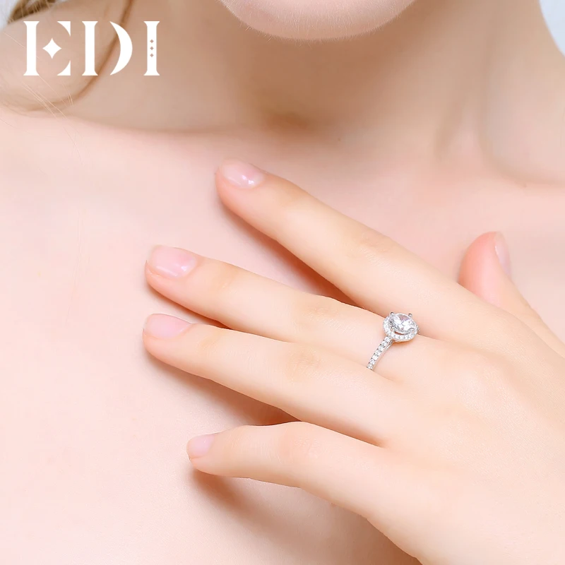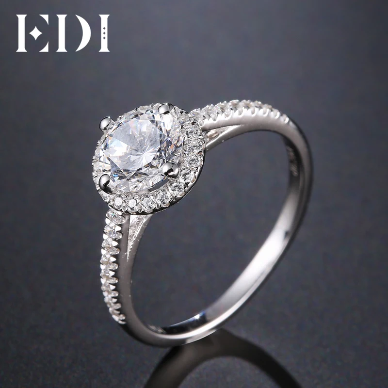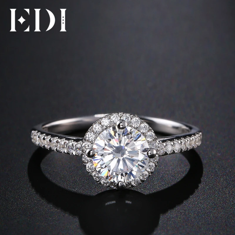 Luxurious Halo 1ct Moissanites Diamond 14k 585 White Gold Engagement Rings For Women Wedding Bands Jewelry