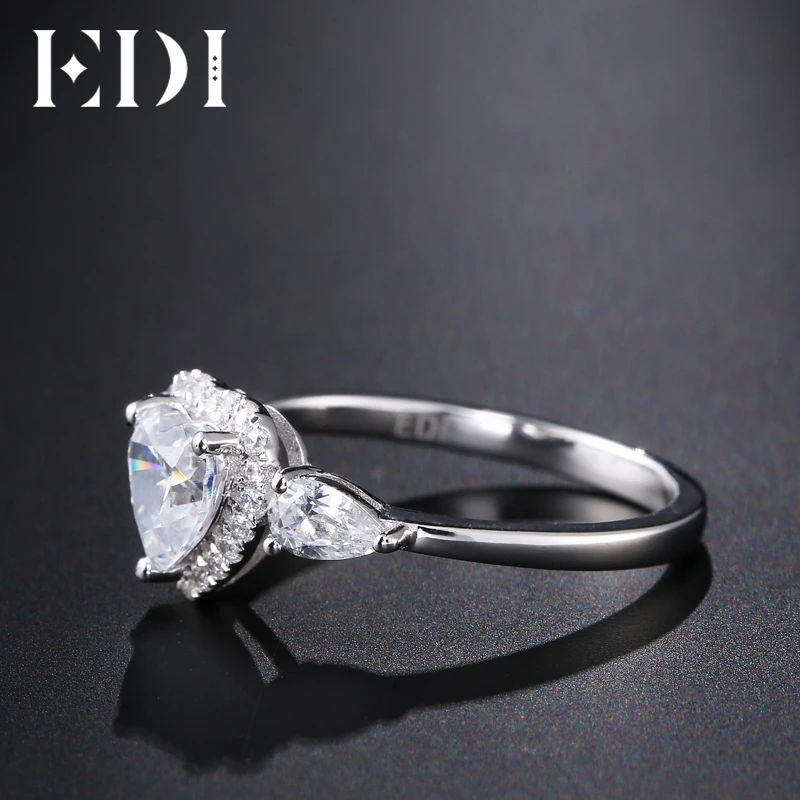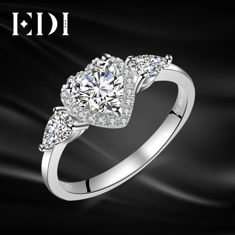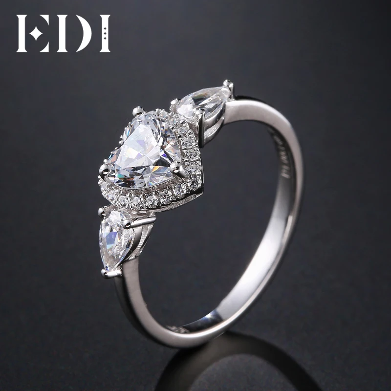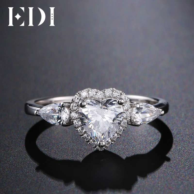 Three Stone Heart Shape 6mm Moissanites Diamond 14k White Gold Engagement Ring For Women Wedding Bands Fine Jewelry