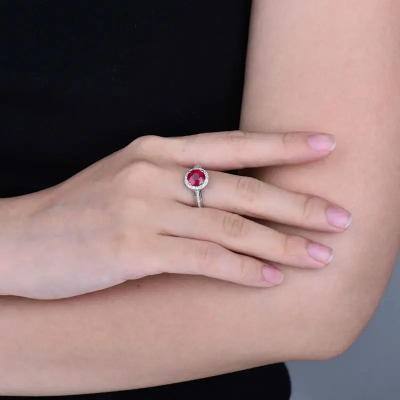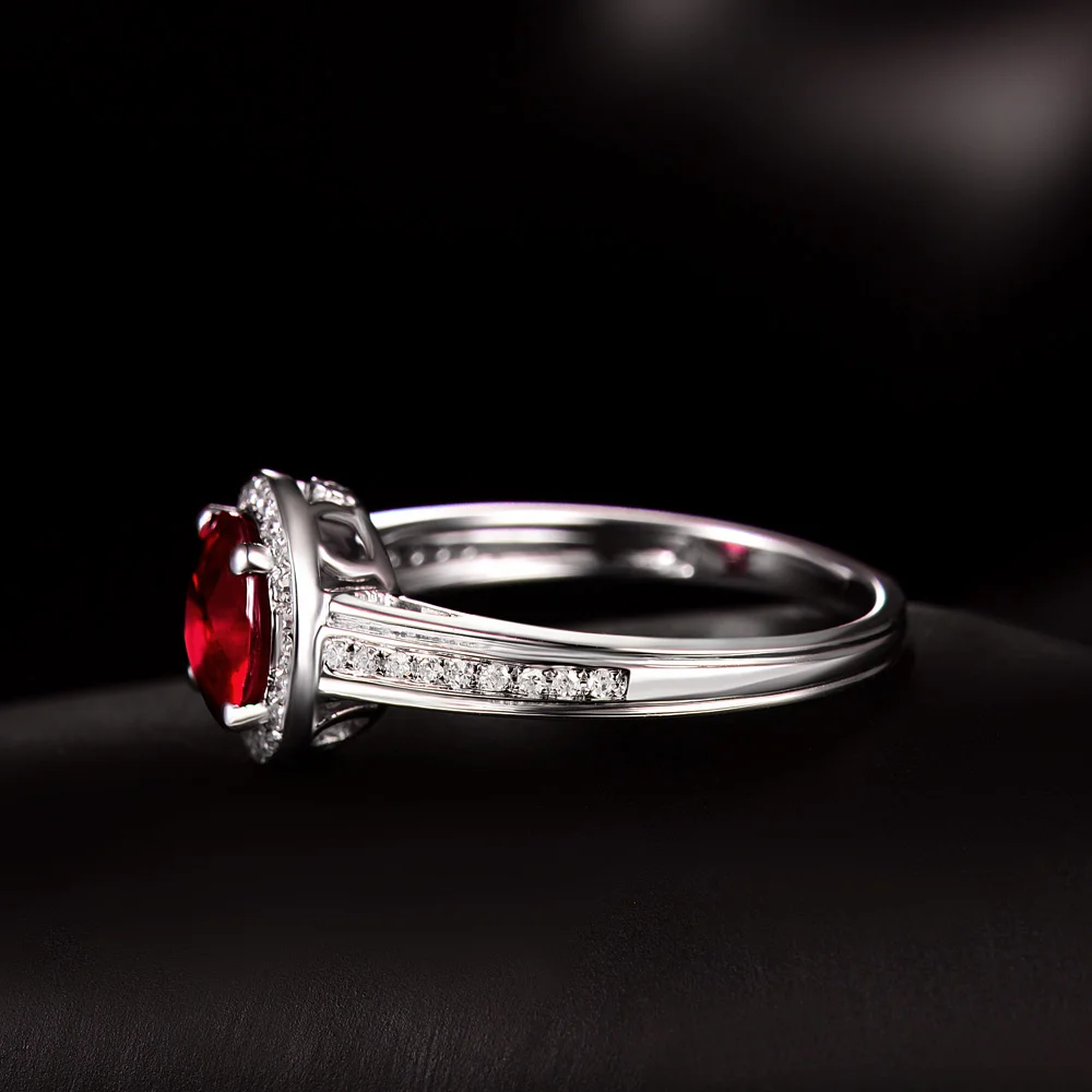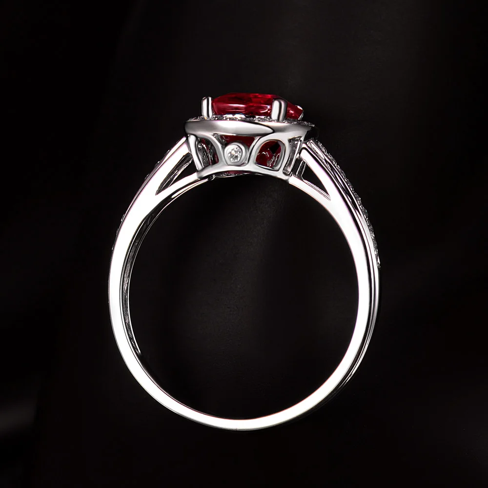 Elegant Design Solid 14K White Gold Real Diamond Natural Ruby Anniversary Ring for Party Jewelry WU302C