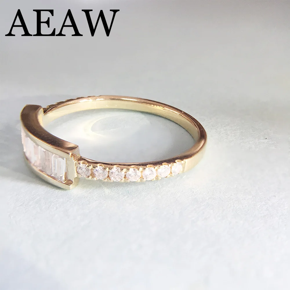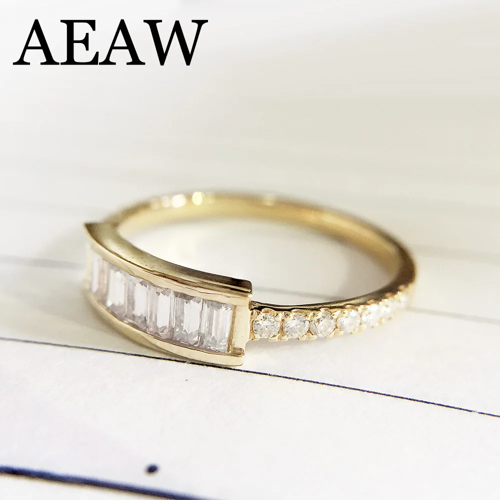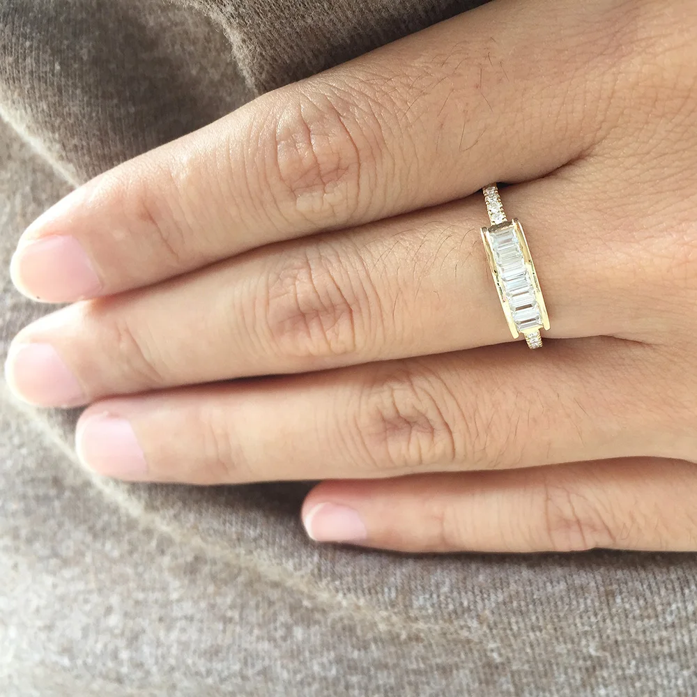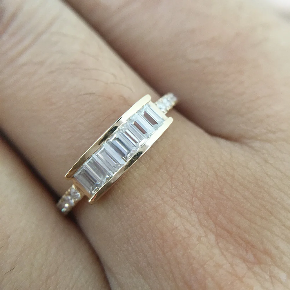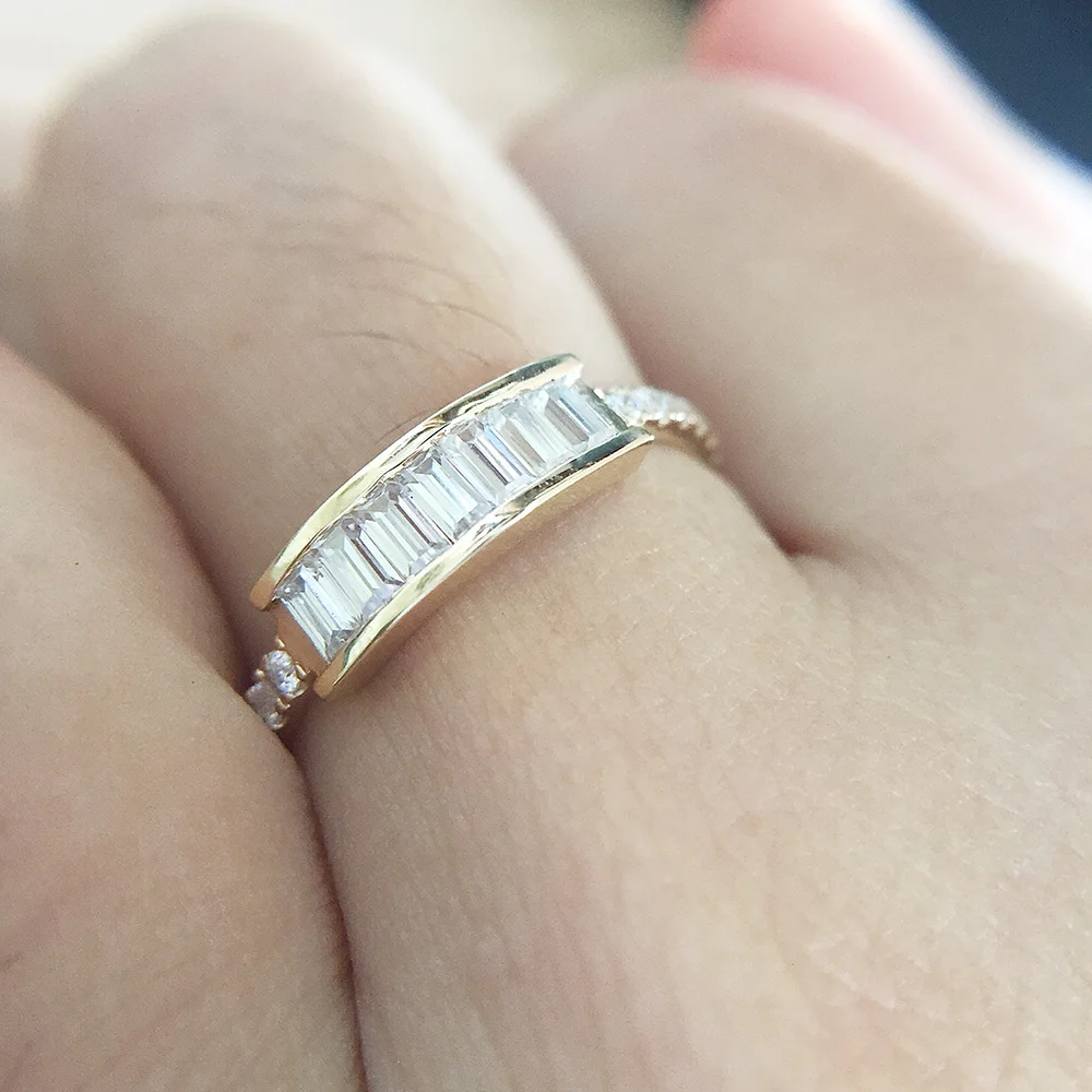 Emerald Cut Moissanite Ring 14K Solid Yellow Gold 7pcs 1.5x3mm Lab Diamond Engagement Wedding Ring For Women