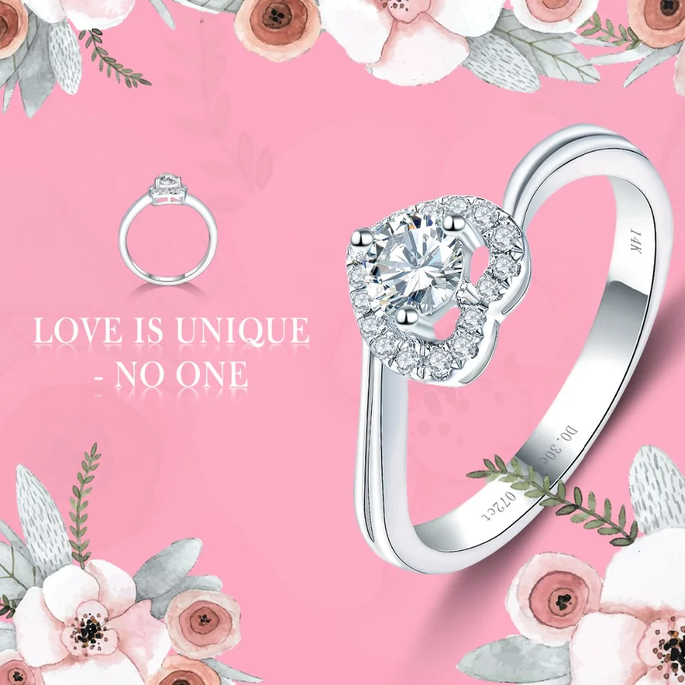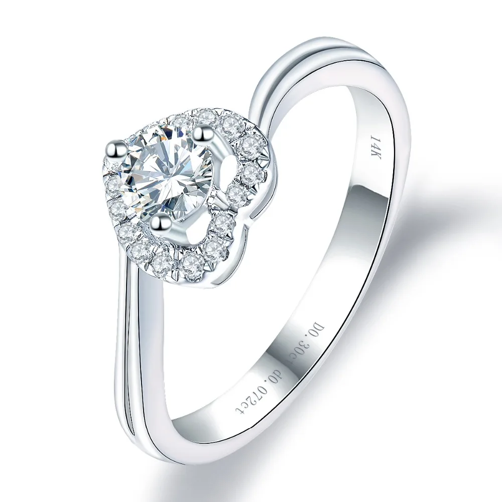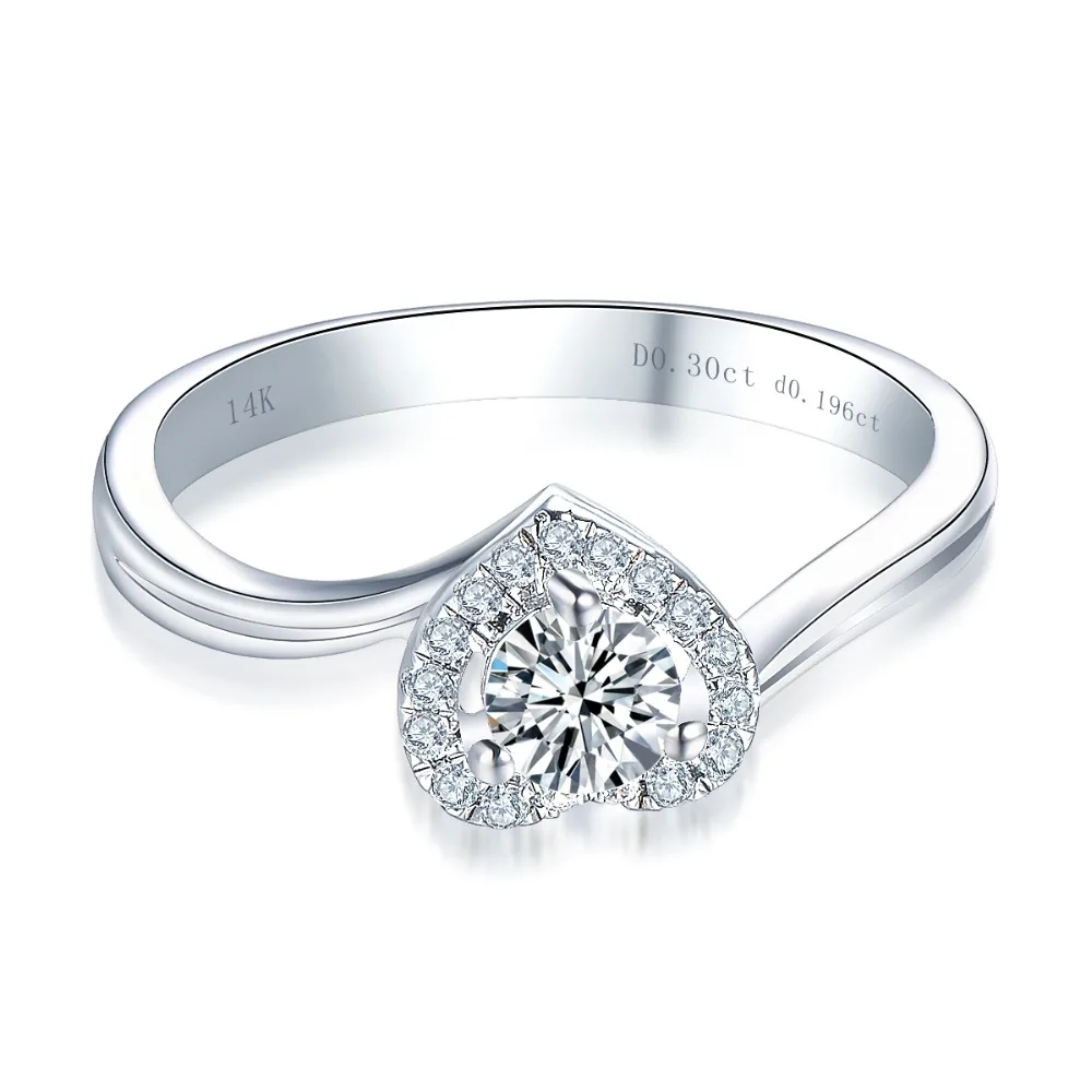 Engagement Ring 14K White Gold Moissanite diamond 0.30ct with real diamond 0.072ct Fine Jewelry For Women's Gift New Lohaspie