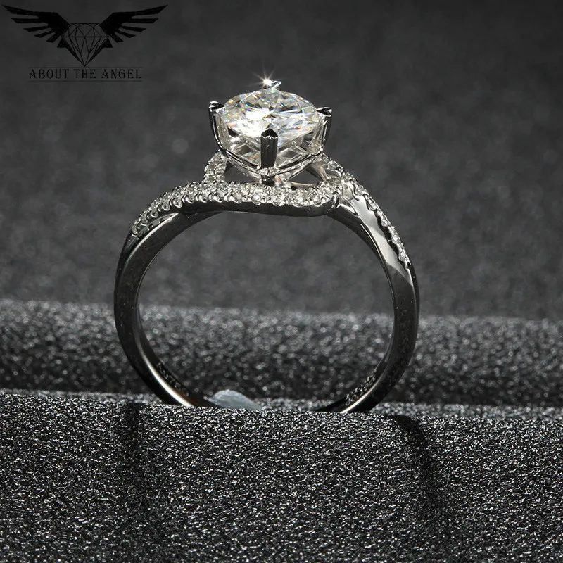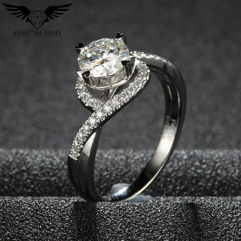 Fashion Style Cross Shank Lady Ring / 14 K Gold Ring / Moissanite Heart shape Prong Diamond Ring