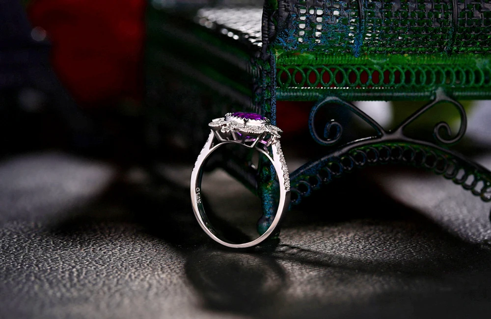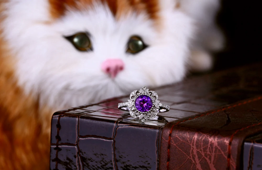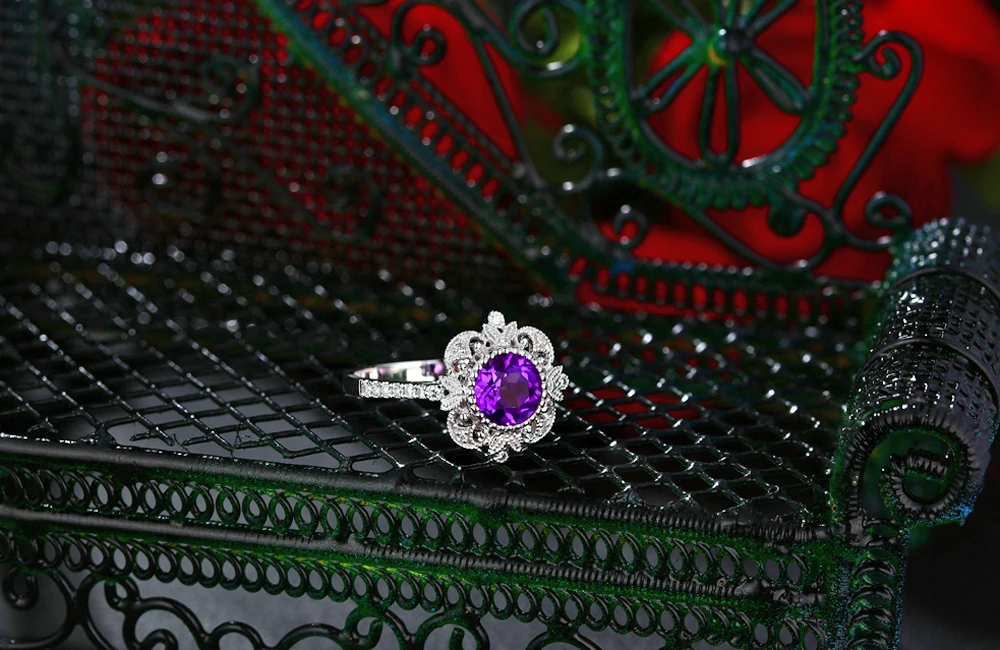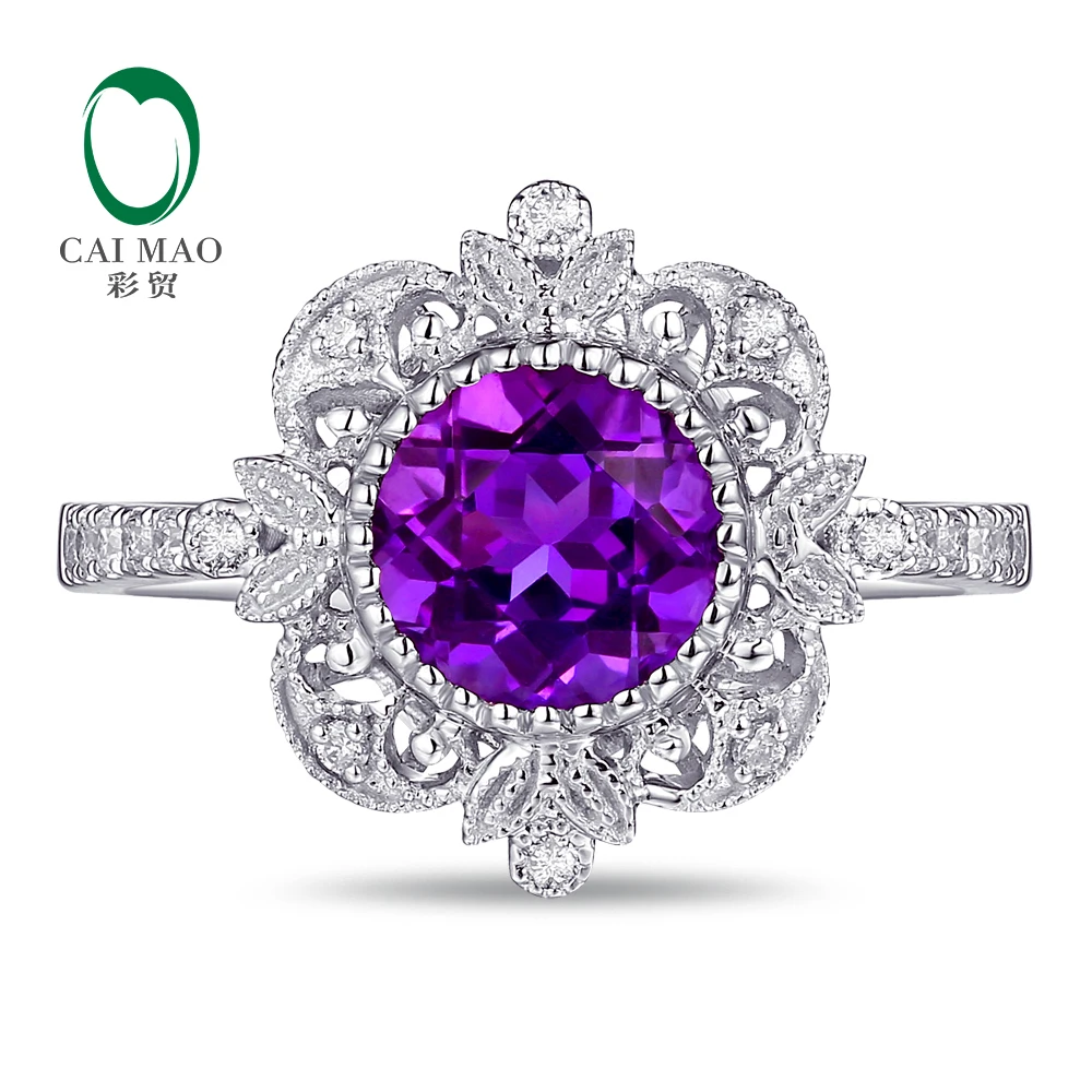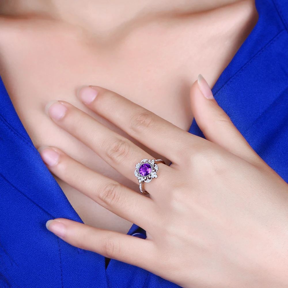 Jewelry 1.04ct Amethyst 14kt Gold 0.17ct Natural Diamond Engagement Ring