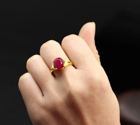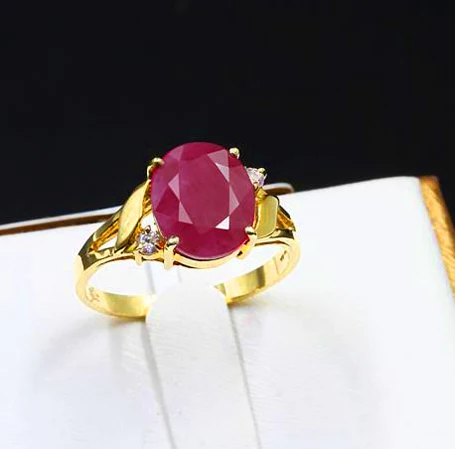 Women natural ruby gem ring Fine jewelry genuine 18K Yellow gold Wedding rings anniversary woman noble elegant royal