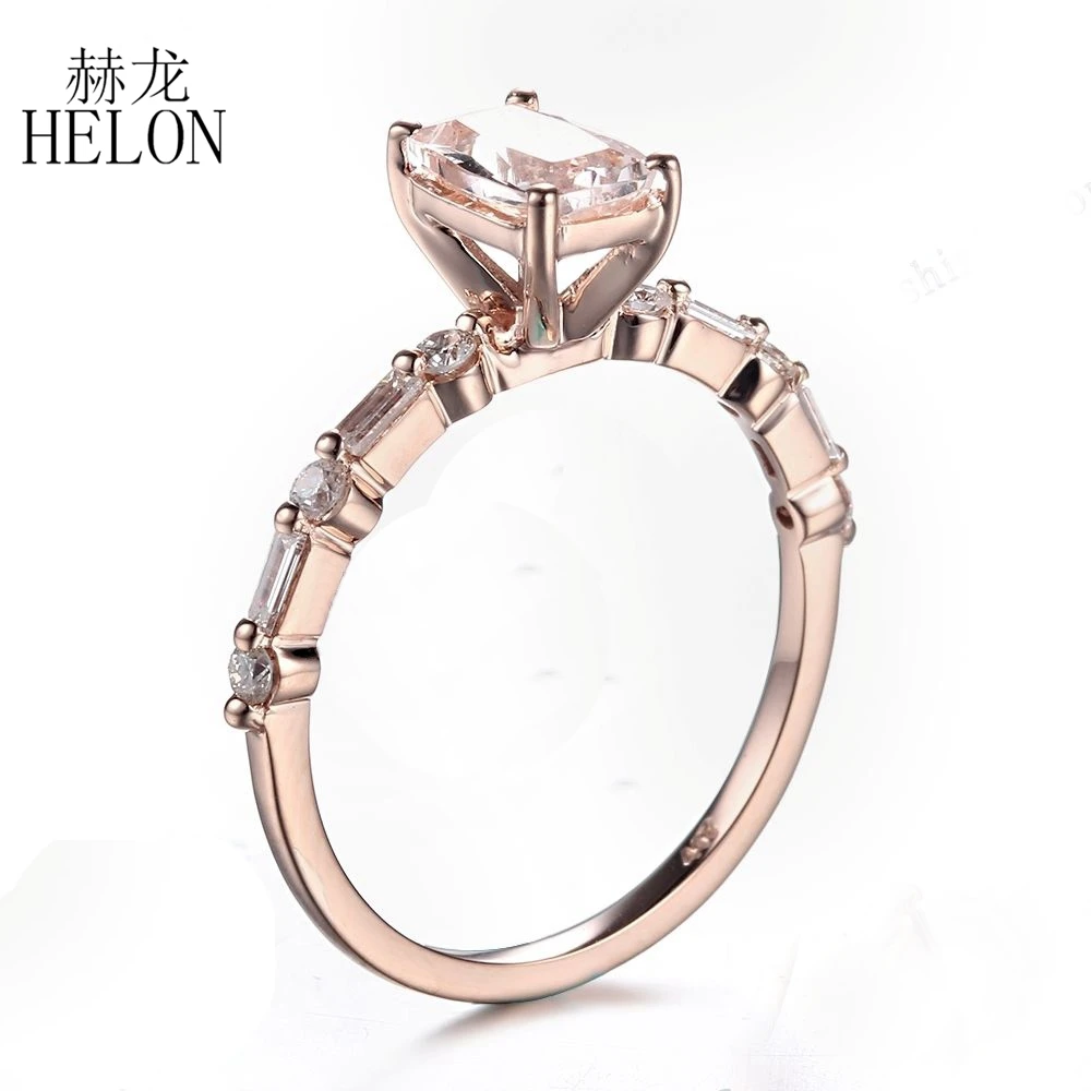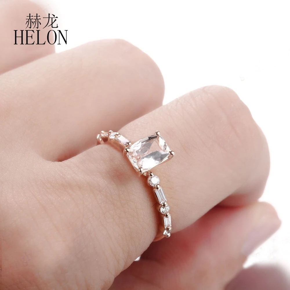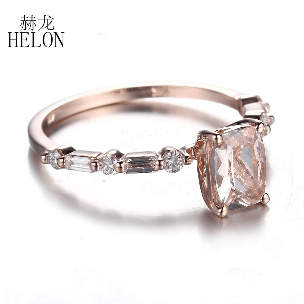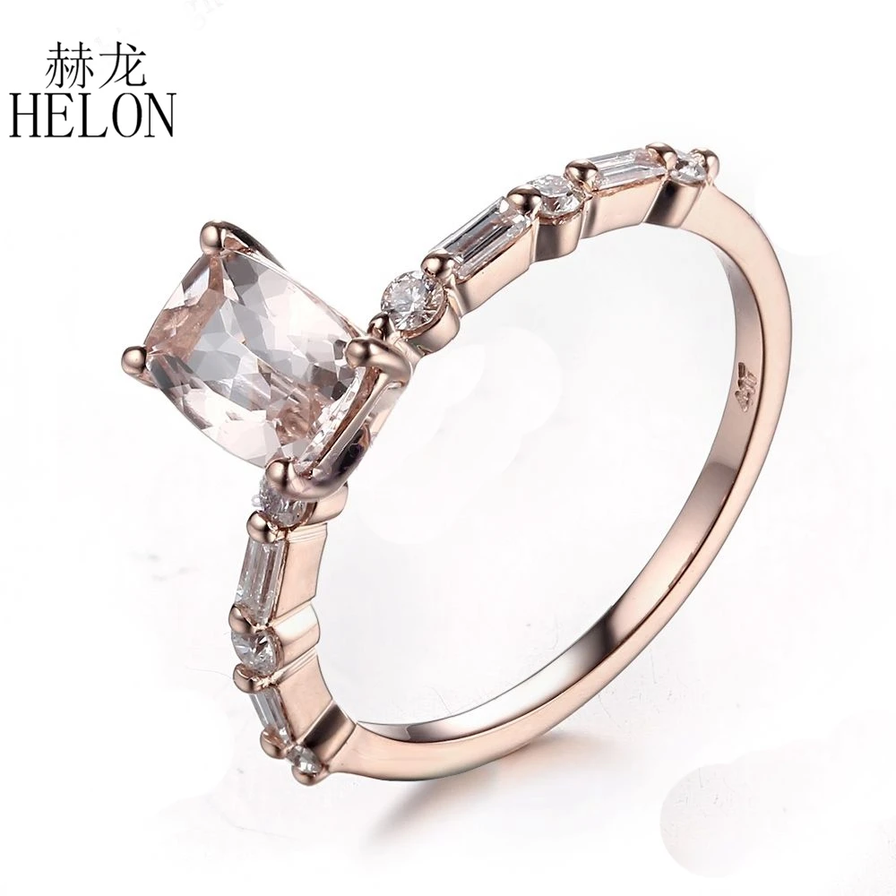 Ladies 0.71ct 7x5mm Cushion Genuine Morganite & Natural Diamonds Jewelry Unique Engagement Wedding Ring Real 14K Rose Gold