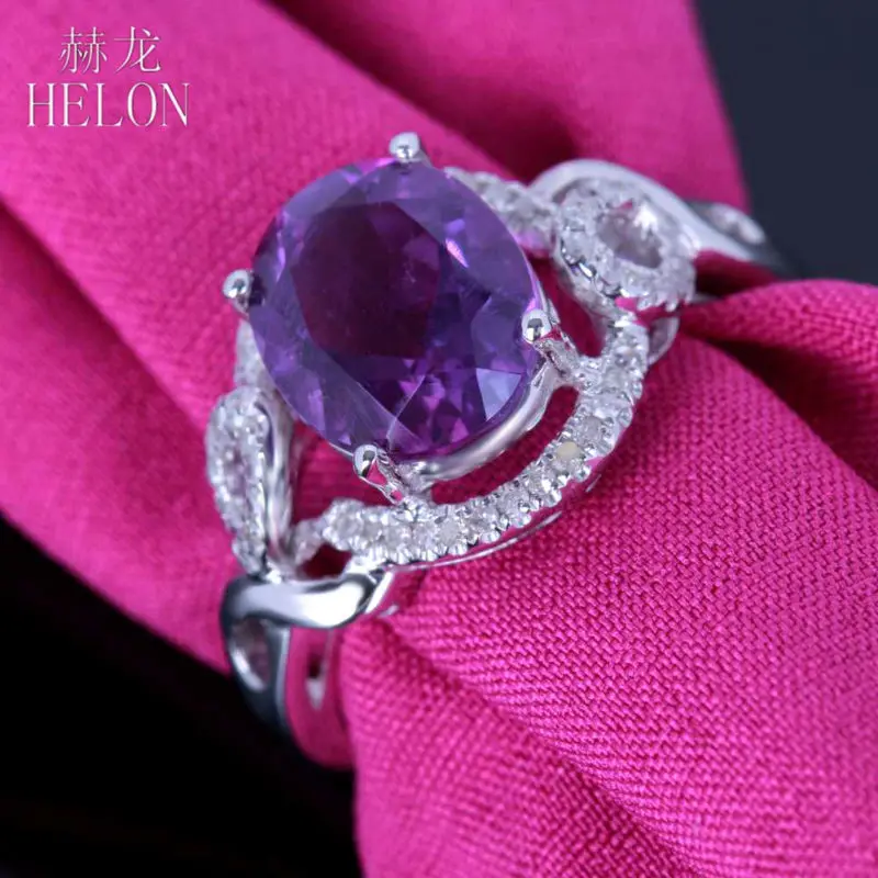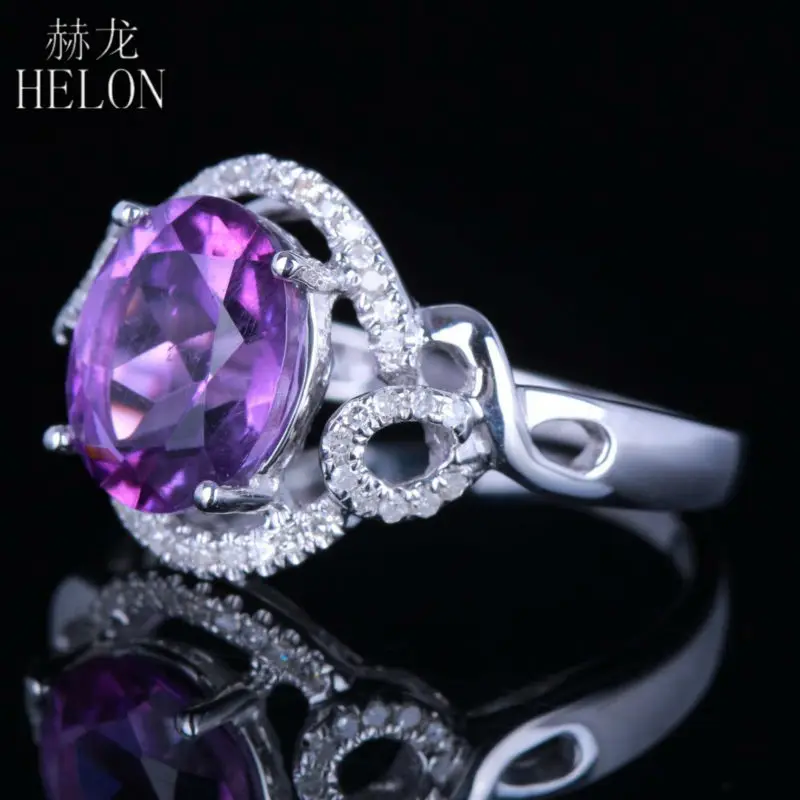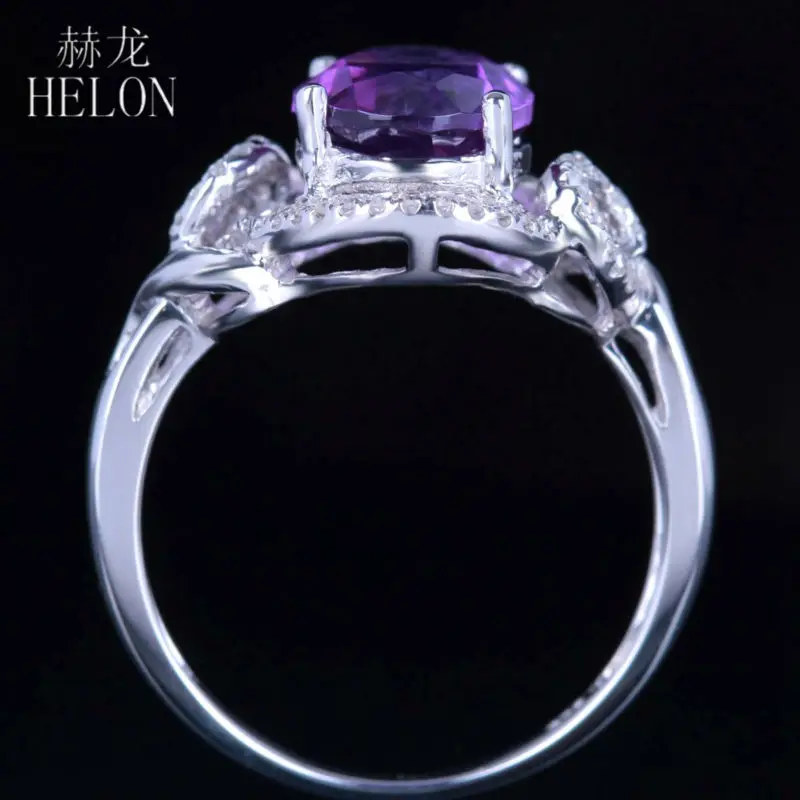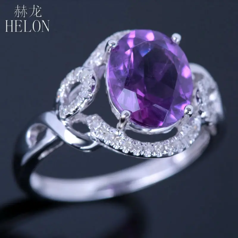 Oval Flawless Amethyst Ring Solid 10K White Gold 100% Genuine Natural Diamonds Ring For Women Wedding Party Gift Jewelry