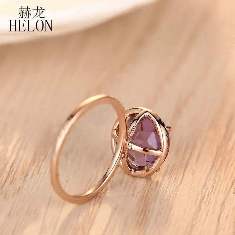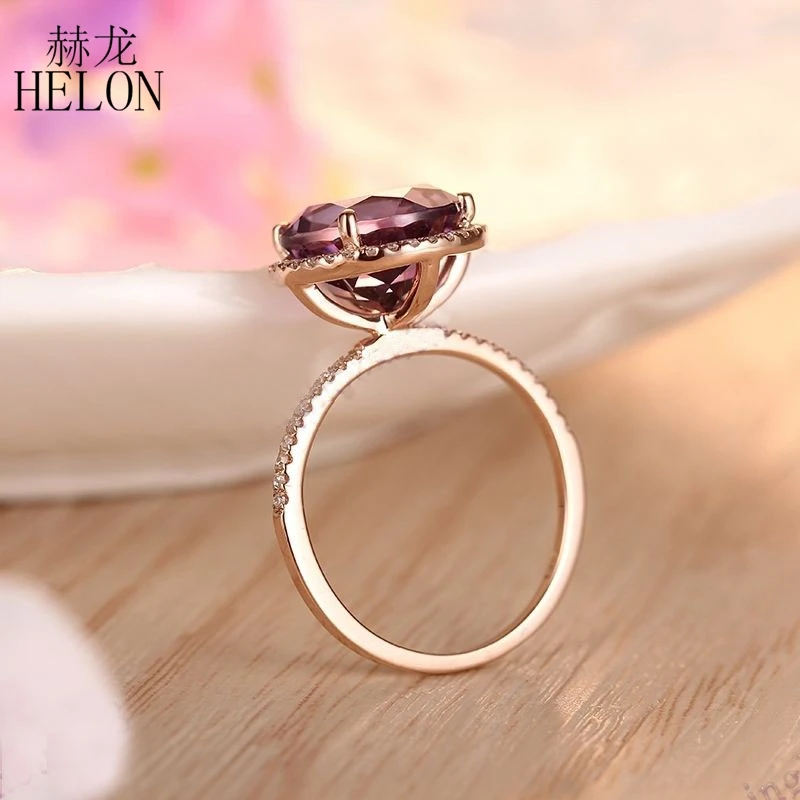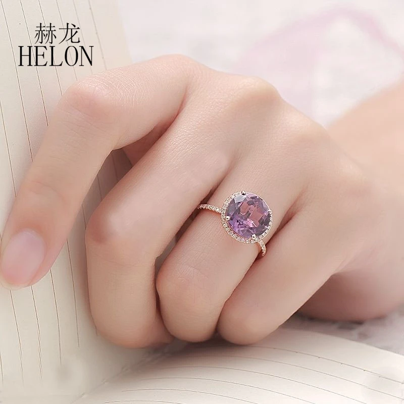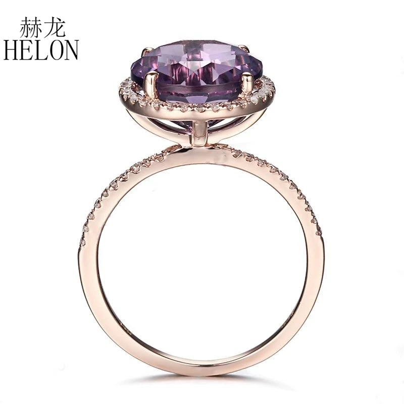 Solid 10K Rose Gold Flawless Round 9.5mm 3.89ct Amethyst Ring 0.2ct Diamonds Halo Engagement Wedding Ring Women's Jewelry