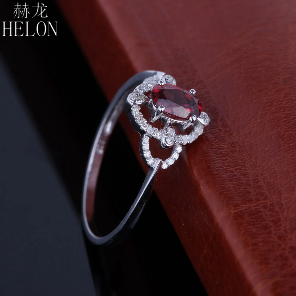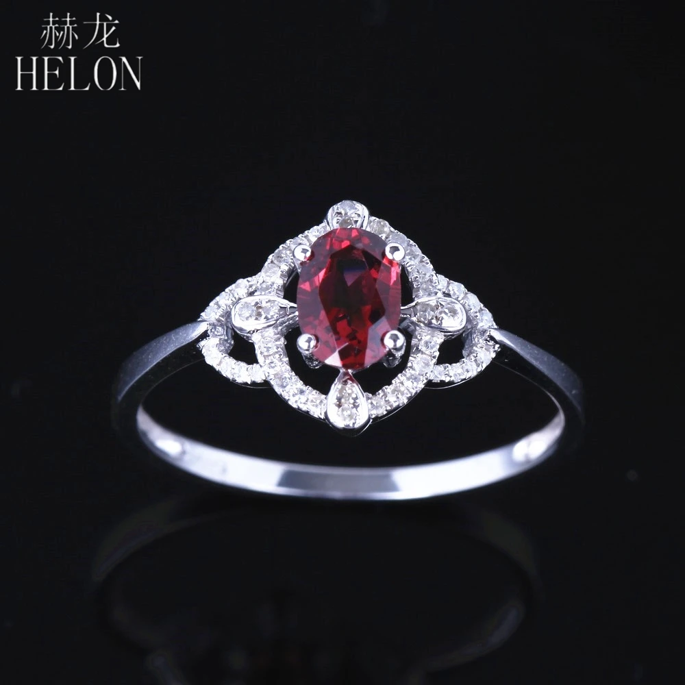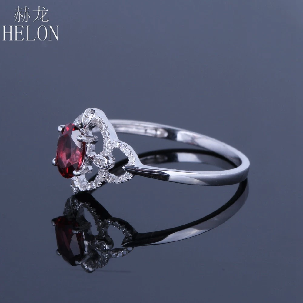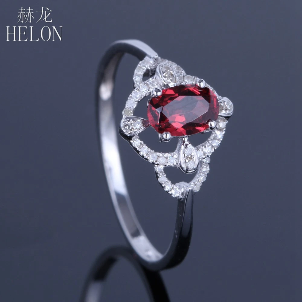 Solid 14K (585) White Gold Flawless Oval 4x6mm Garnet Pave Real Natural Diamonds Gemstone Wedding Trendy Fine Jewelry Ring