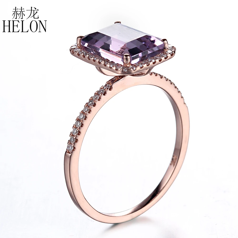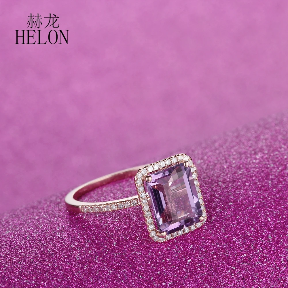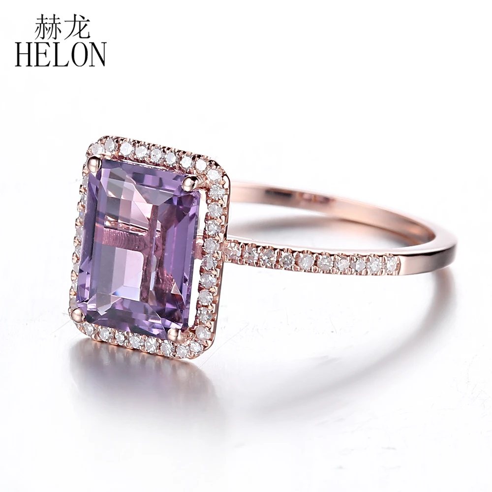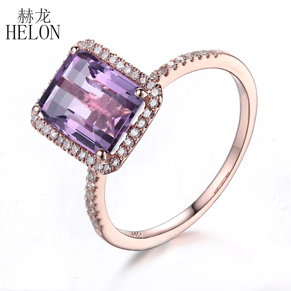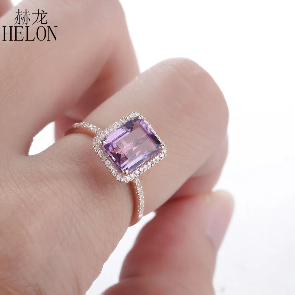 Solid 14k Rose Gold 9x7mm Emerald Cut 2.37ct Purple Amethyst Pave Diamond Engagement Wedding Ring Women Jewelry Fine Ring