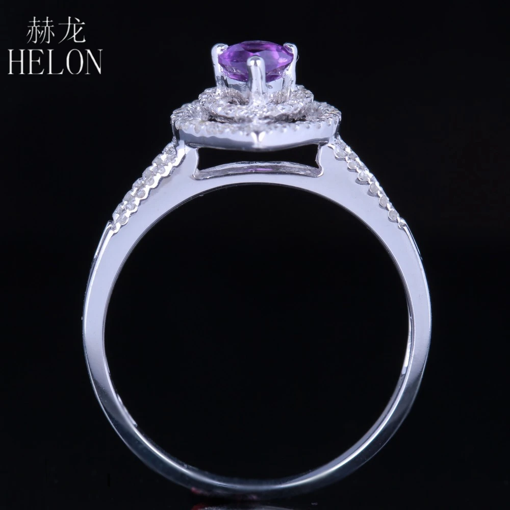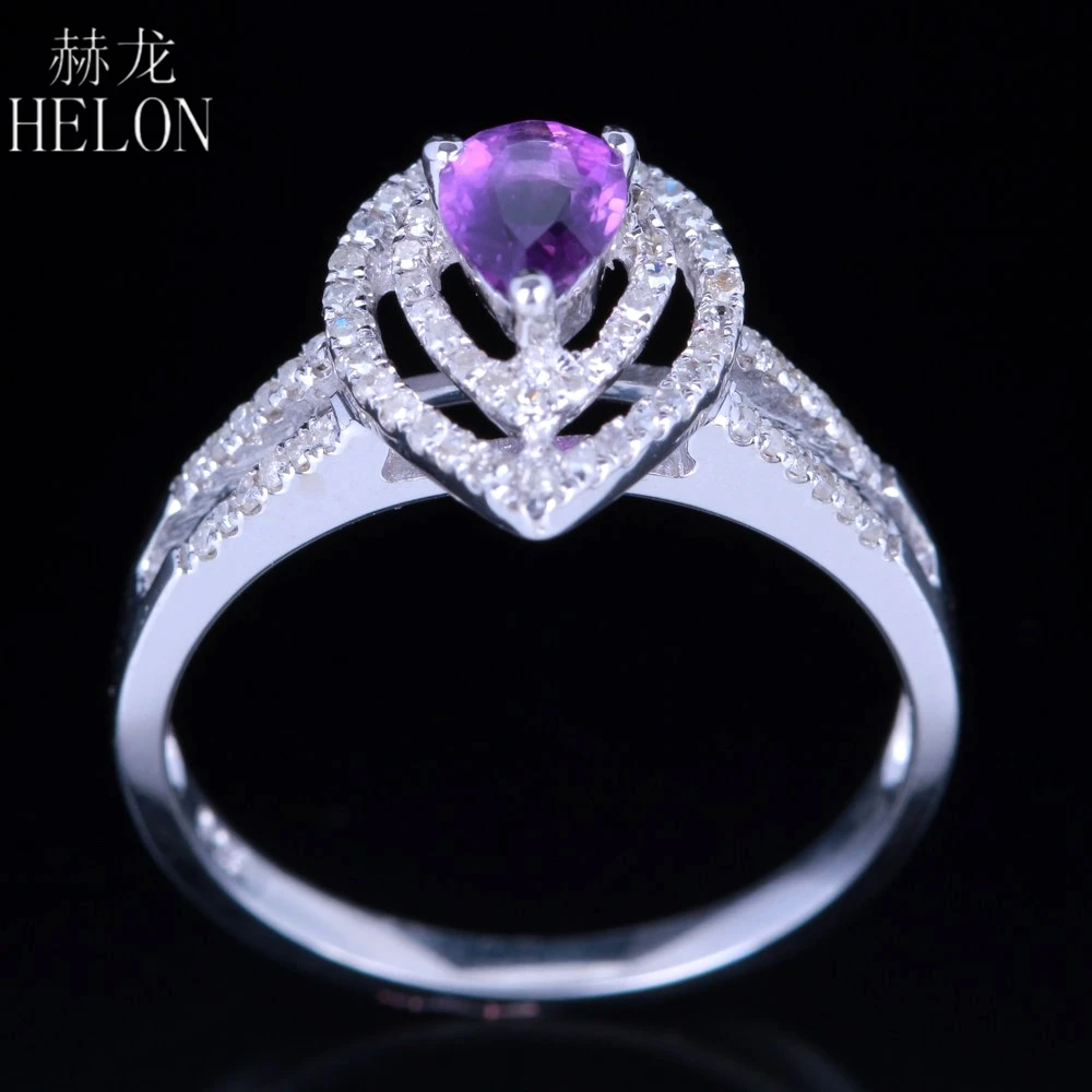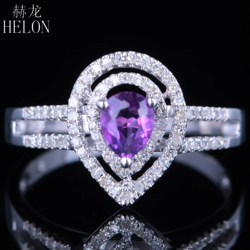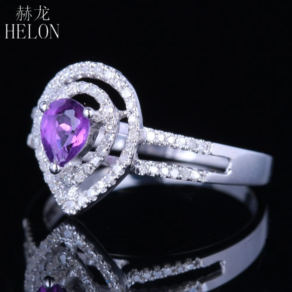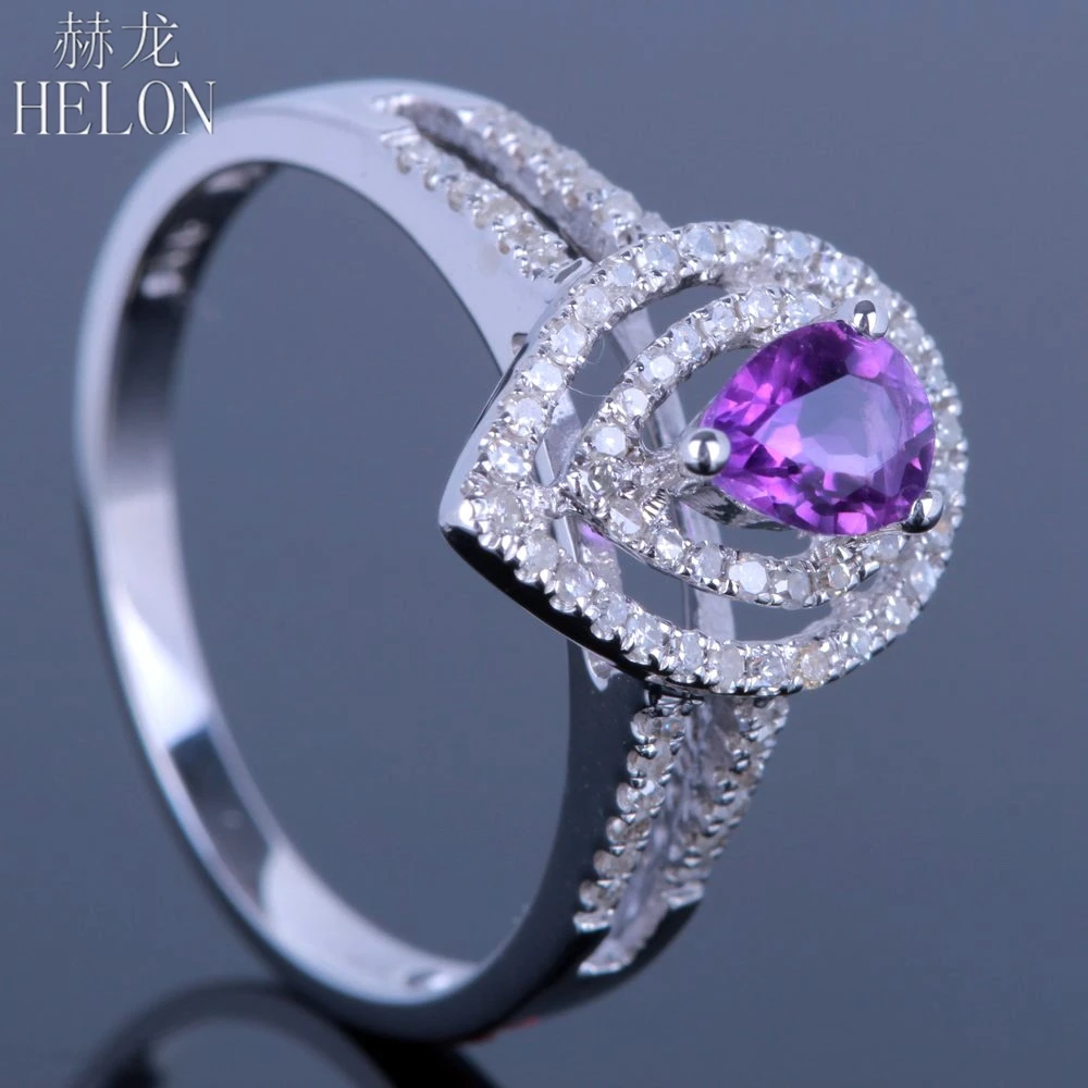 Sparkling Solid 10K White Gold 5x4mm Pear 100% Genuine Amethyst Gemstone Ring Real Diamond Engagement Wedding Jewelry Ring