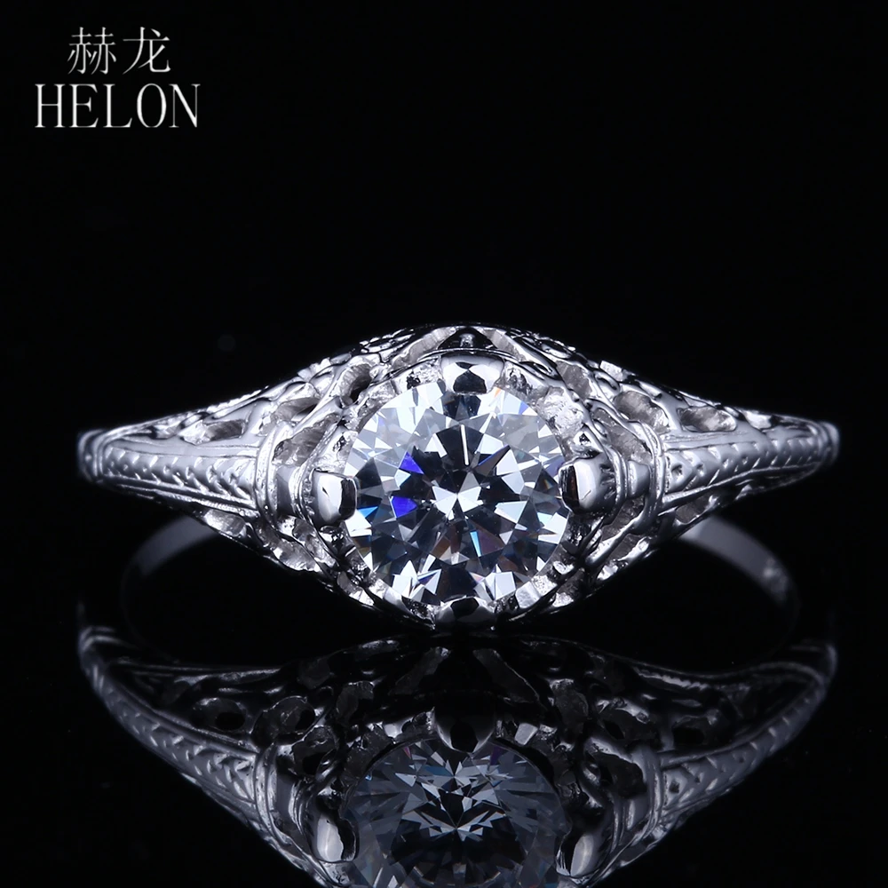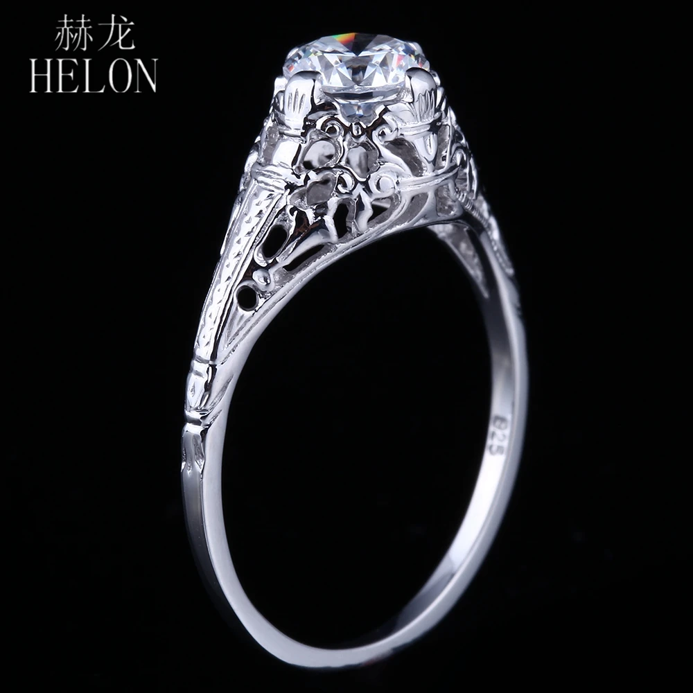 Sterling Silver 925 Round Cut 5.5mm 0.6ct Moissanites Diamond Engagement Fine Ring Women Vintage Antique Wedding Jewelry