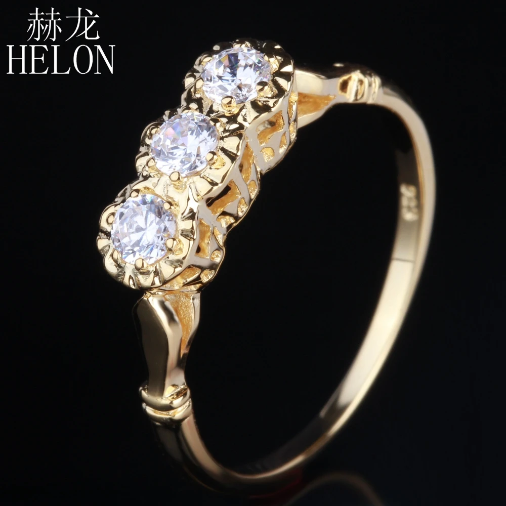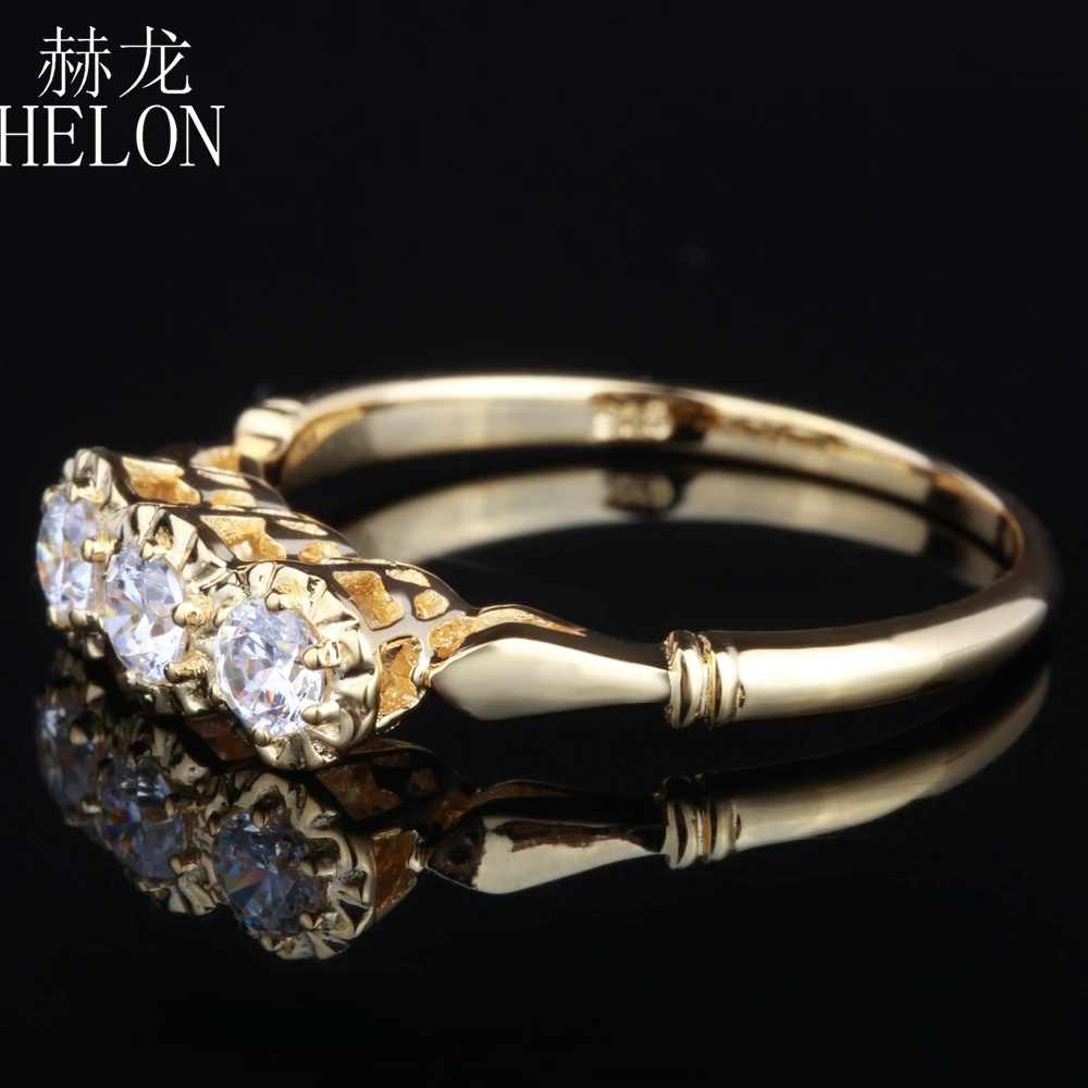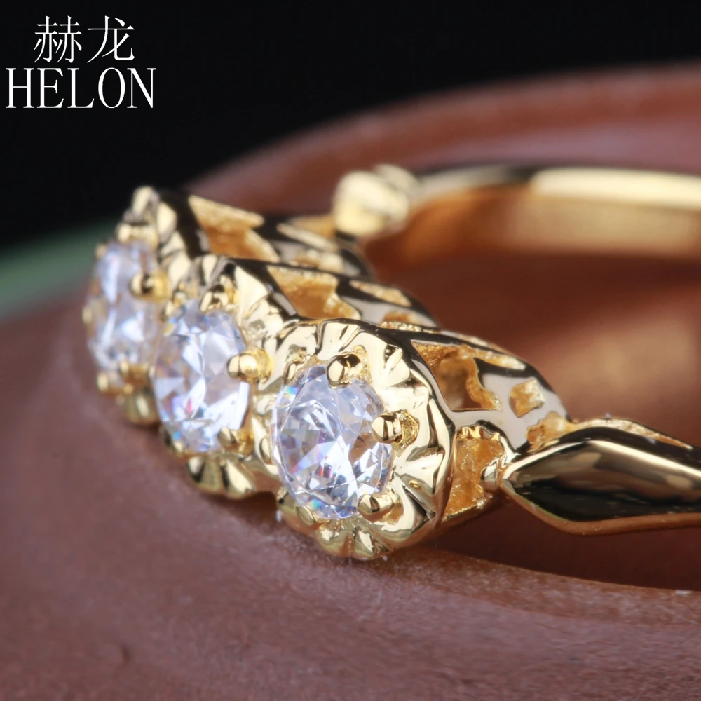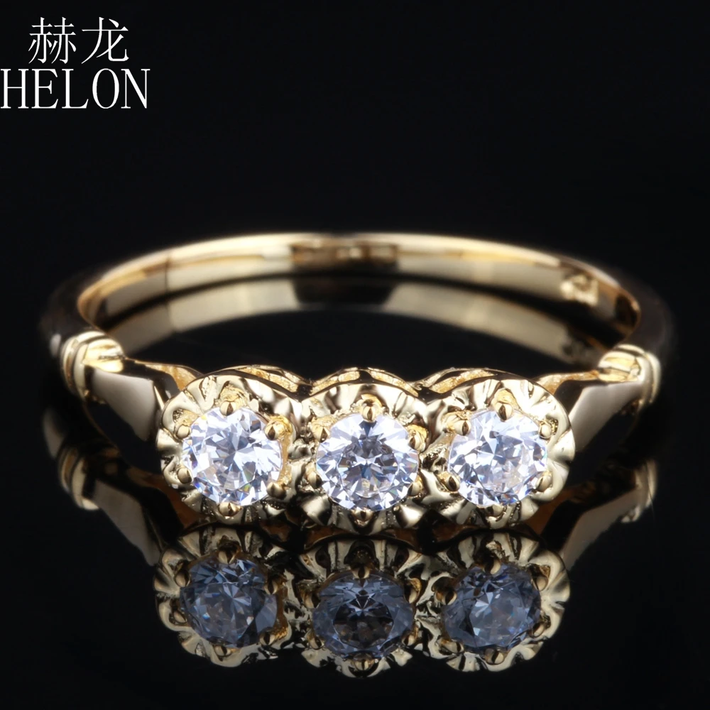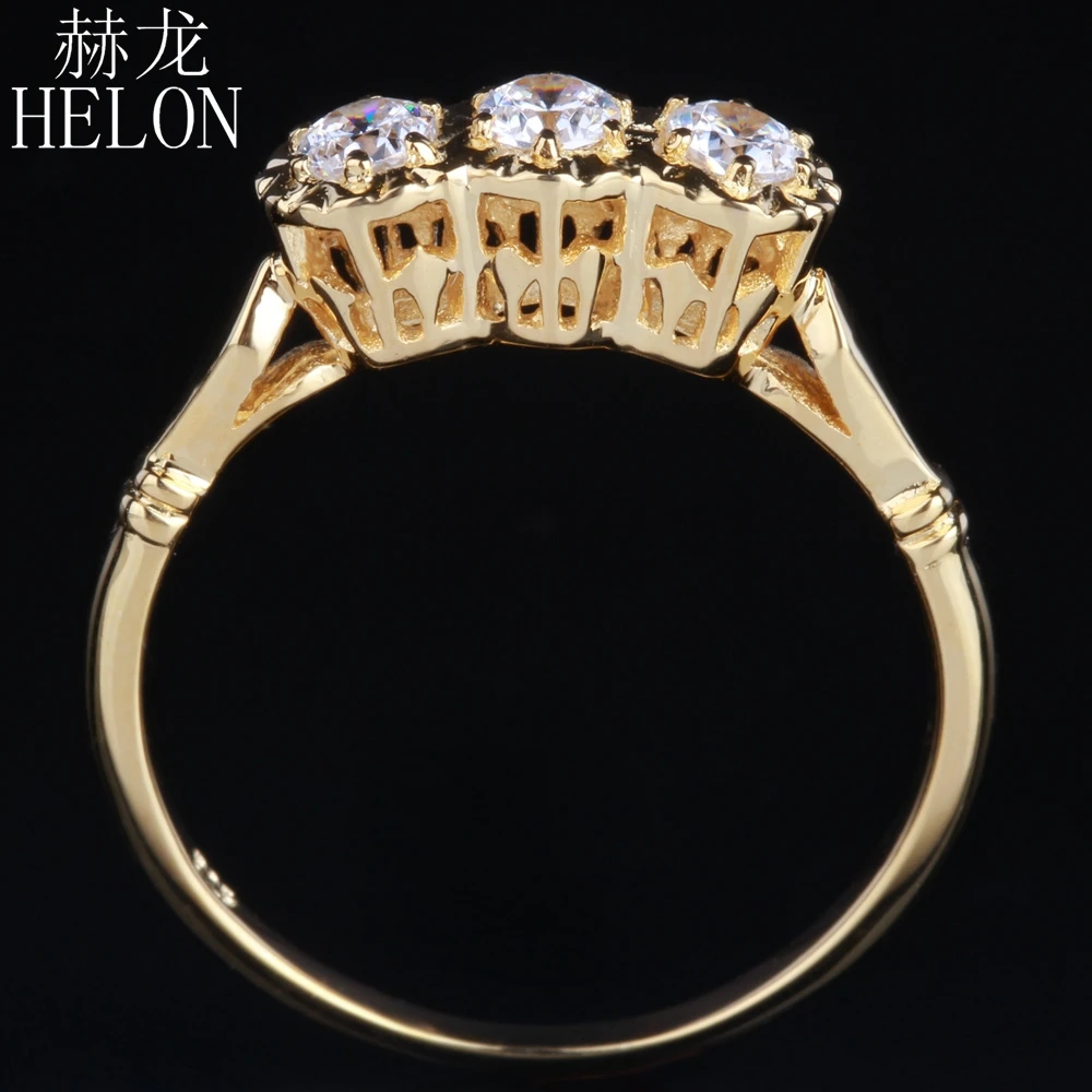 Women Exquisite Jewelry Solid 14K Yellow Gold 3mm Round Three Stone Lab Grown Diamond Moissanites Engagement Wedding Ring