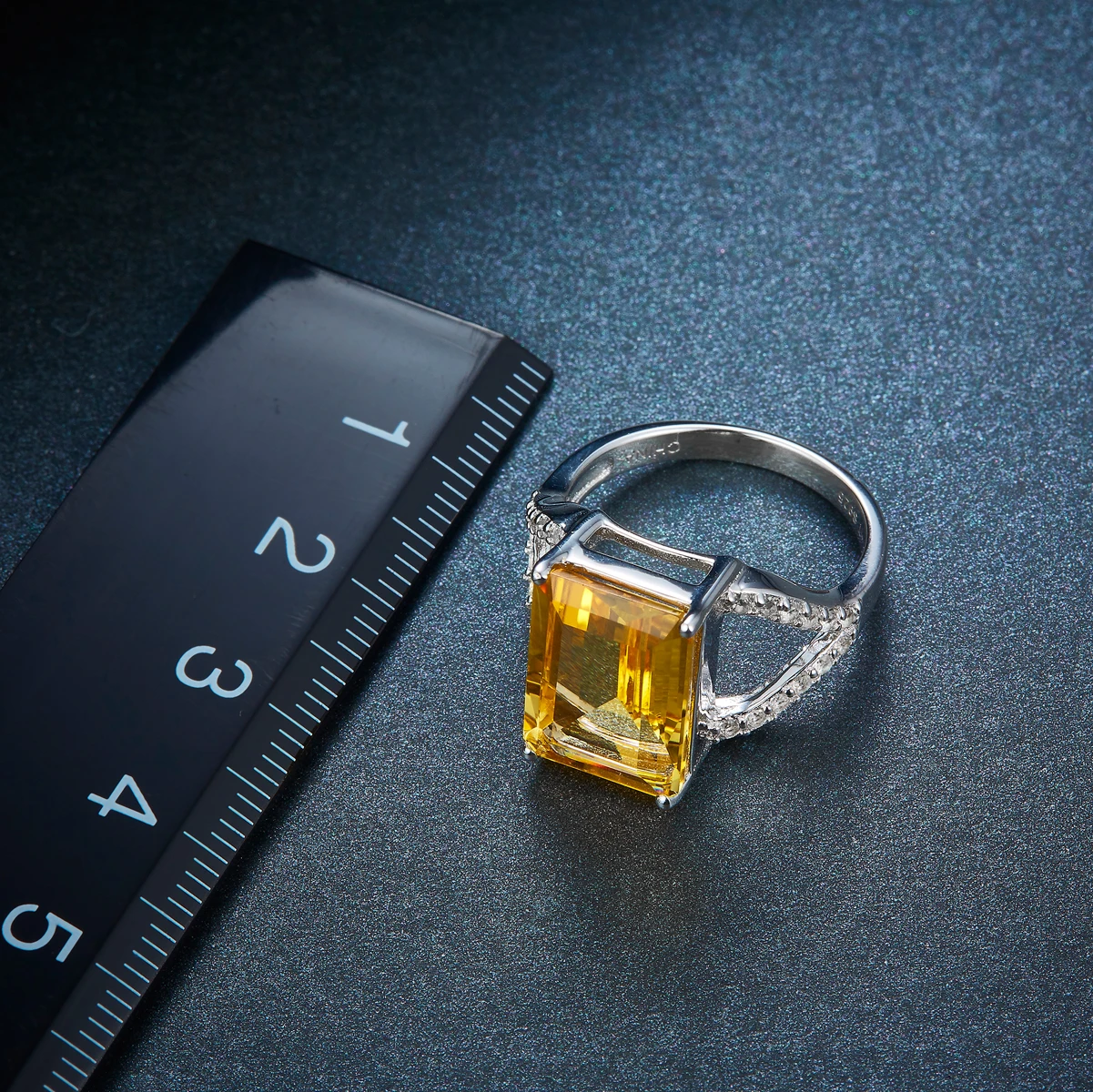 Hutang 6.16ct Natural Golden Citrine Cocktail Ring Solid 925 Sterling Silver Gemstone Fine Jewelry Women Accessories 2017 New