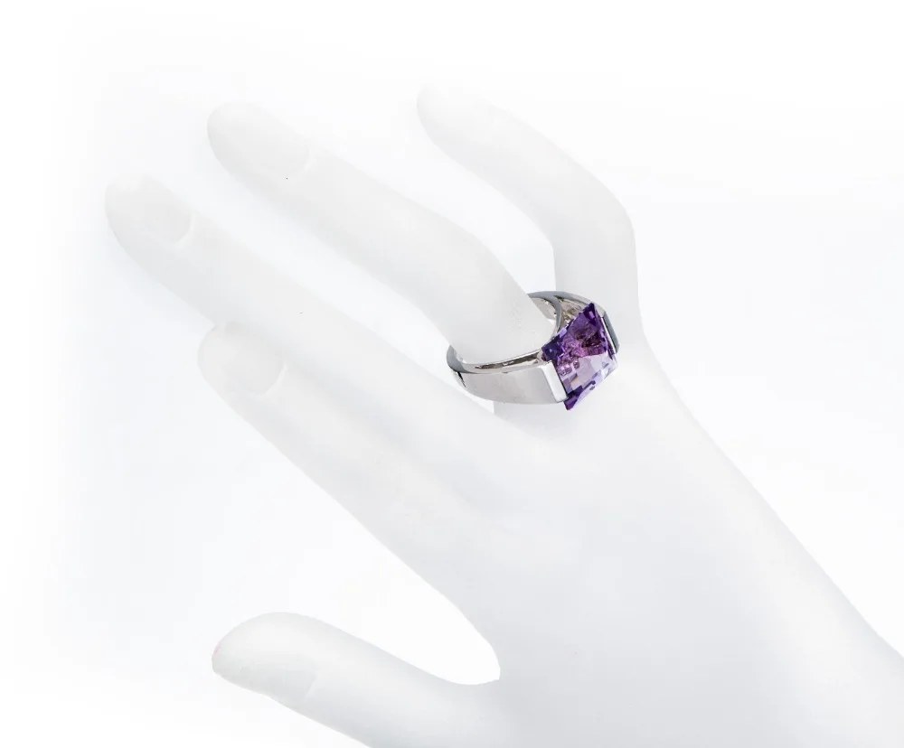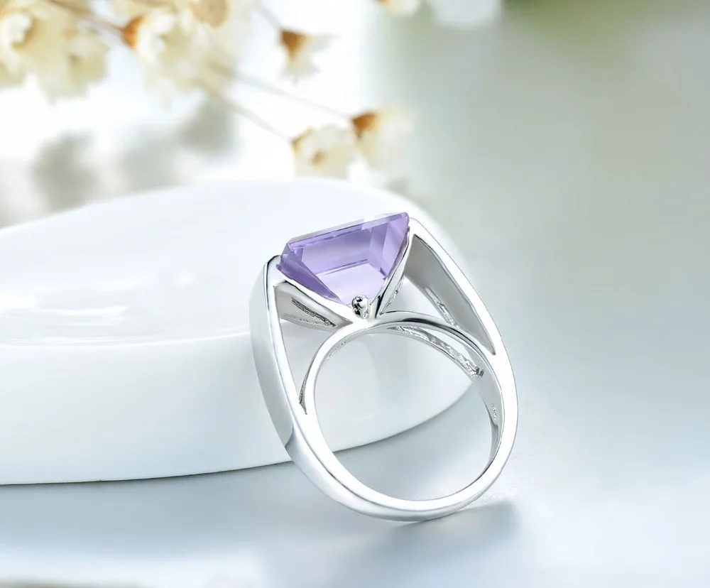 Hutang Big Square Amethyst Gemstone Jewelry Fine Rings for Women 925 Sterling Silver Finger Ring Punk Ladies Anel Koyle Wedding