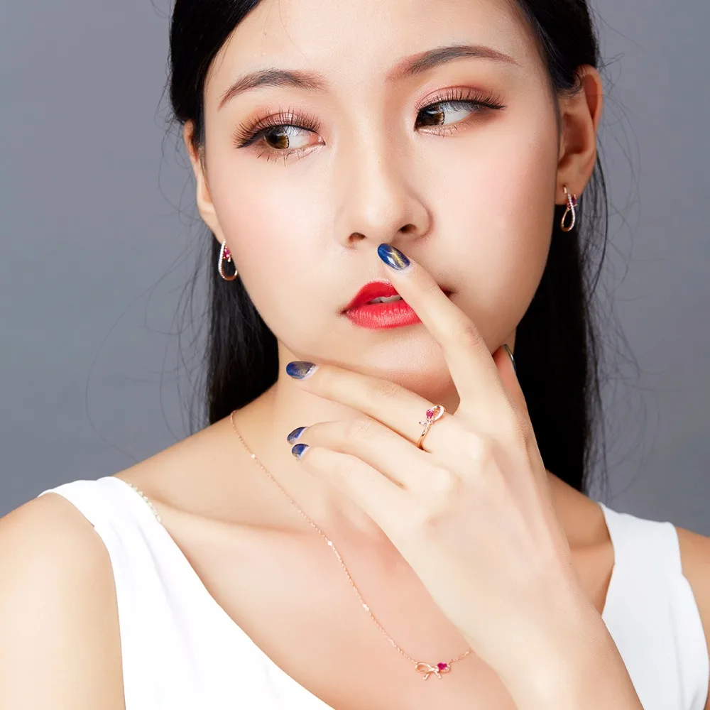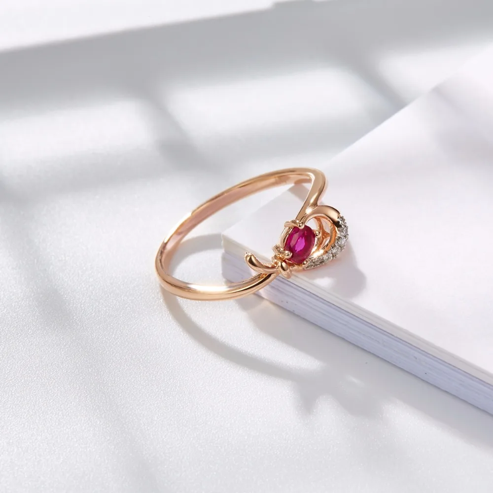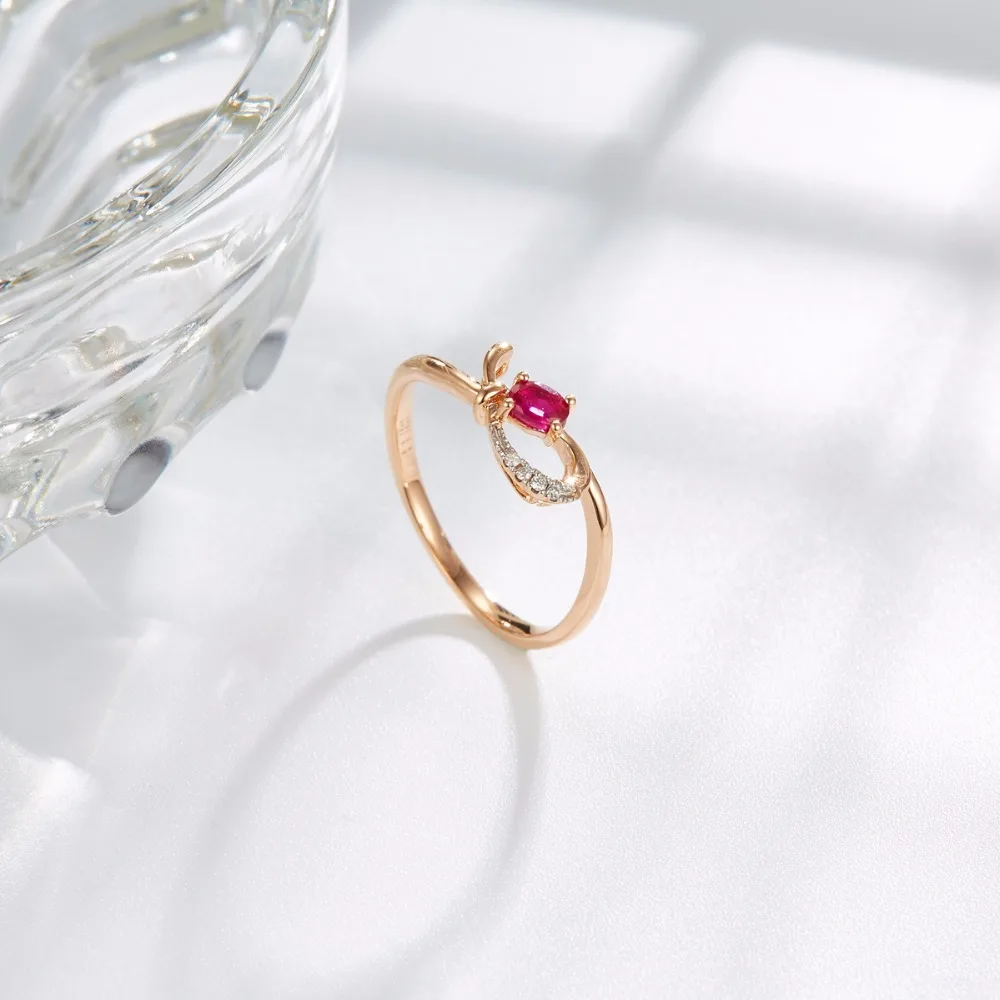 Hutang Natural Gemstone Ruby & Diamond Solid 18K Rose Online Engagement Rings Gold Diamond-Jewelry For Women 2017 Best Buy