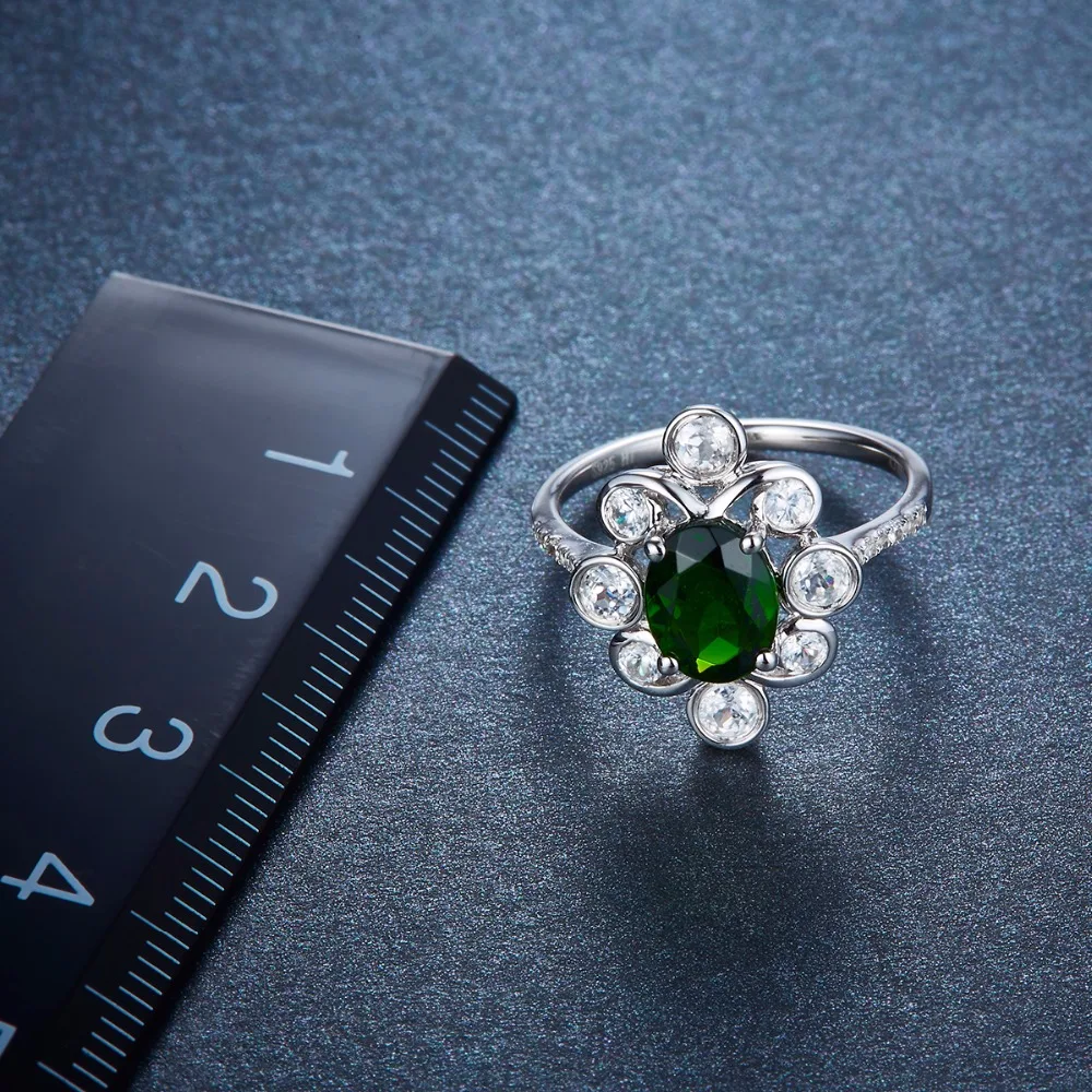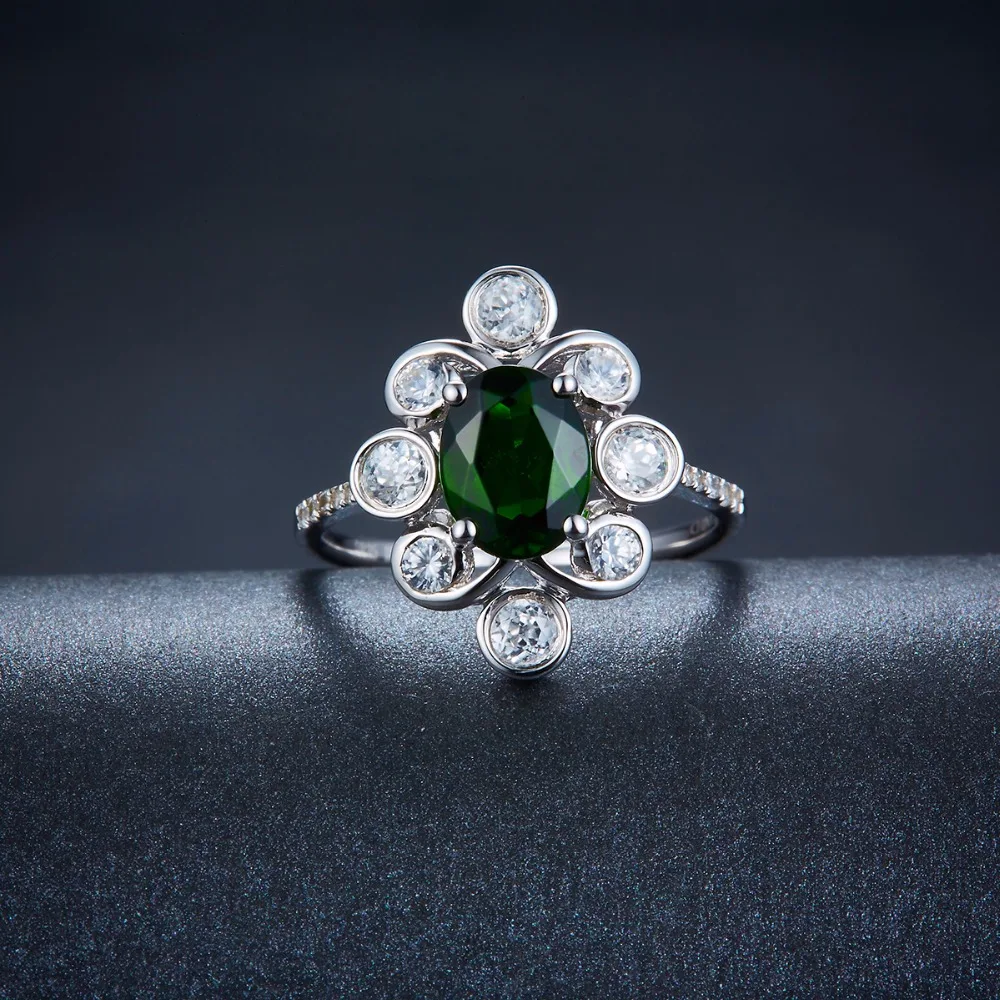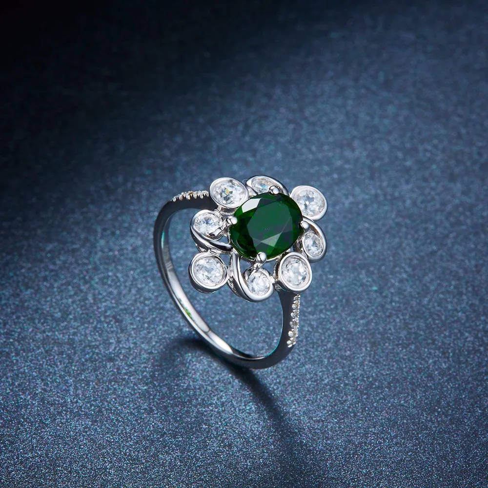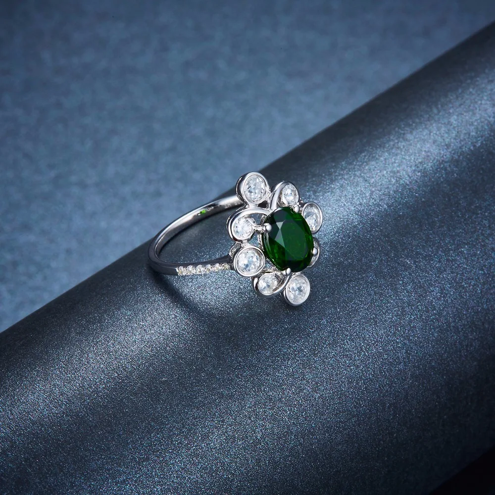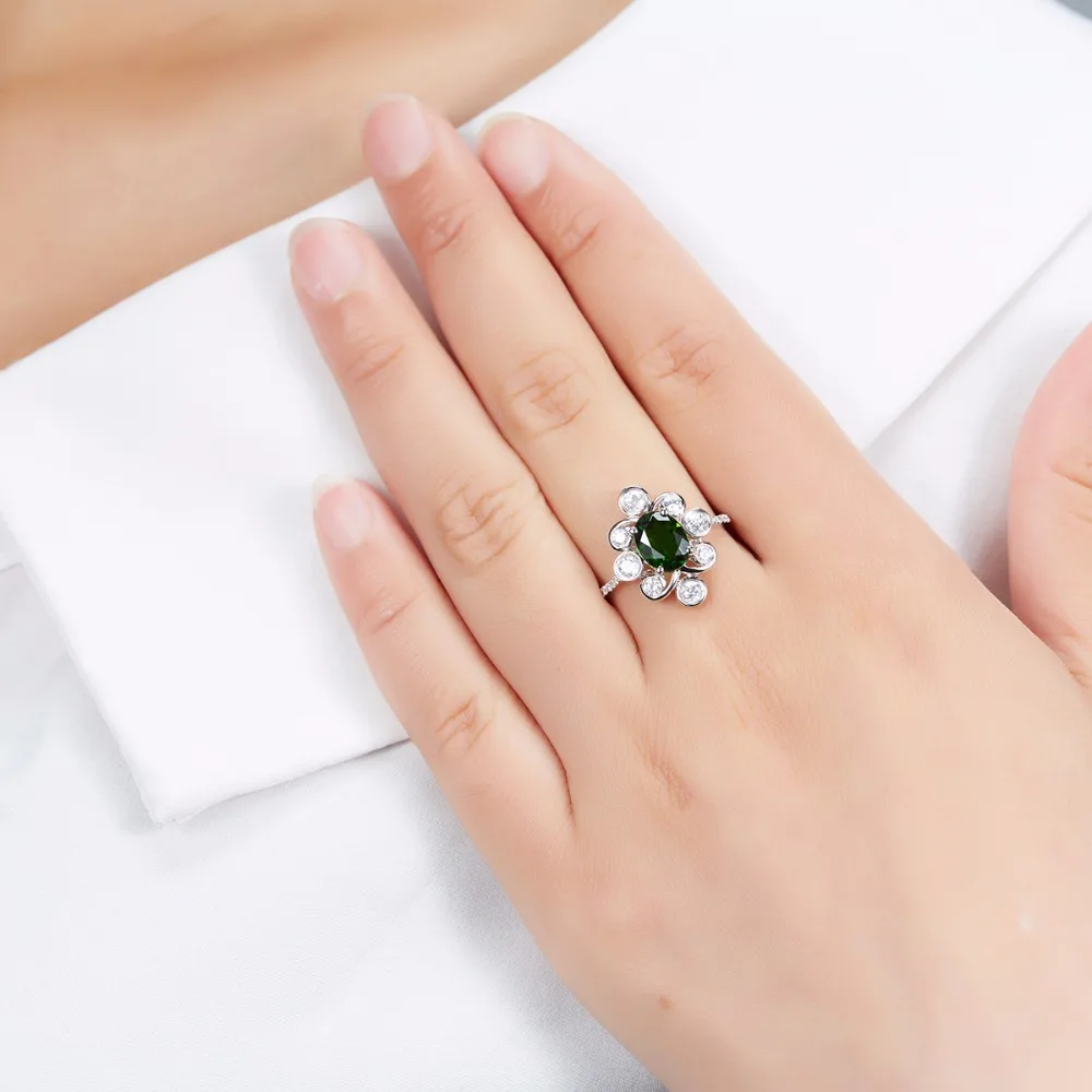 Hutang Solid 925 Sterling Silver 1.30 ct Natural Gemstone Chrome Diopside Flower Ring Fine Jewelry Presents Gift For Women NEW
