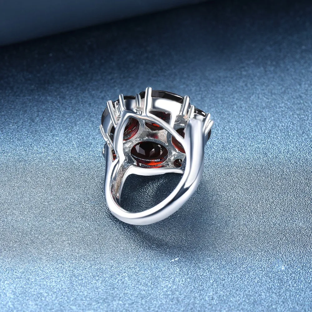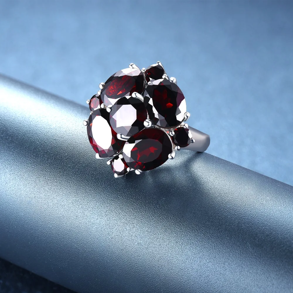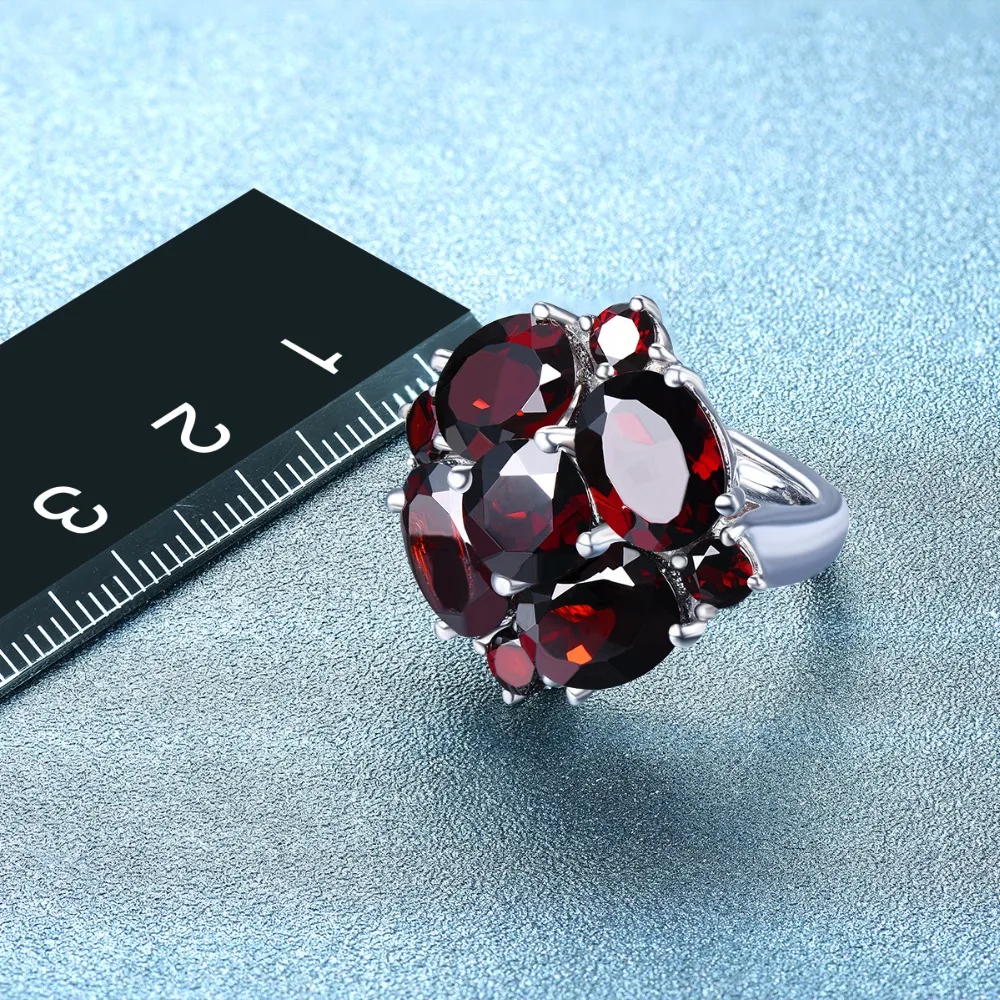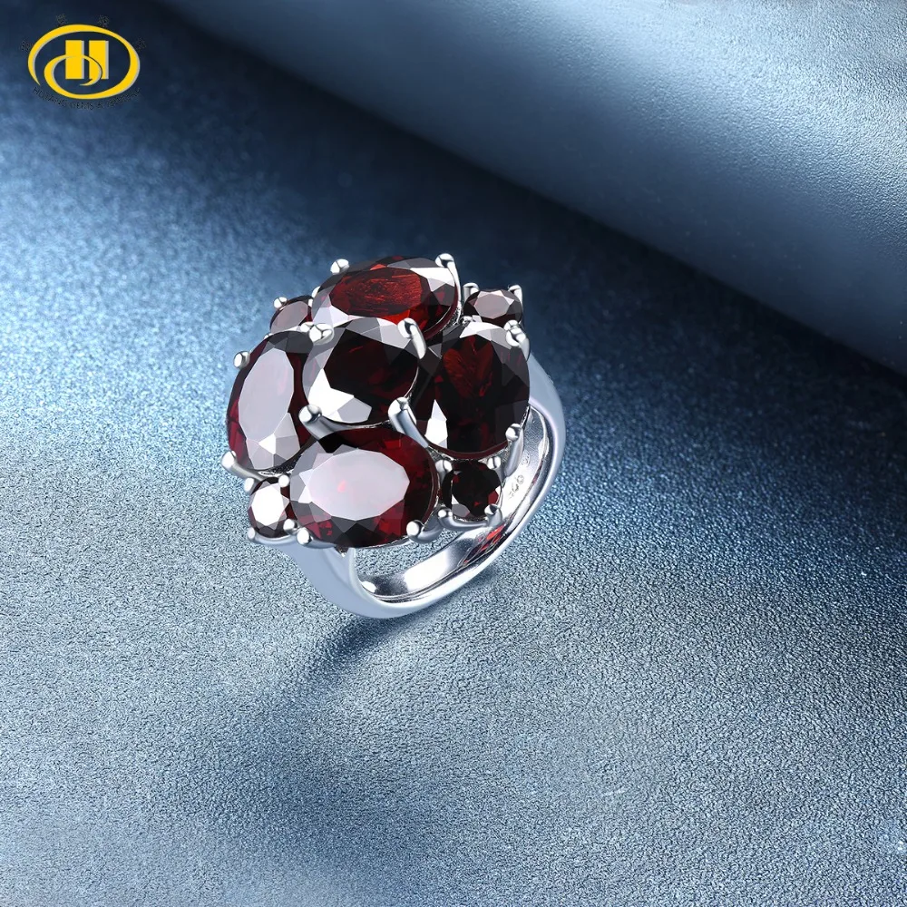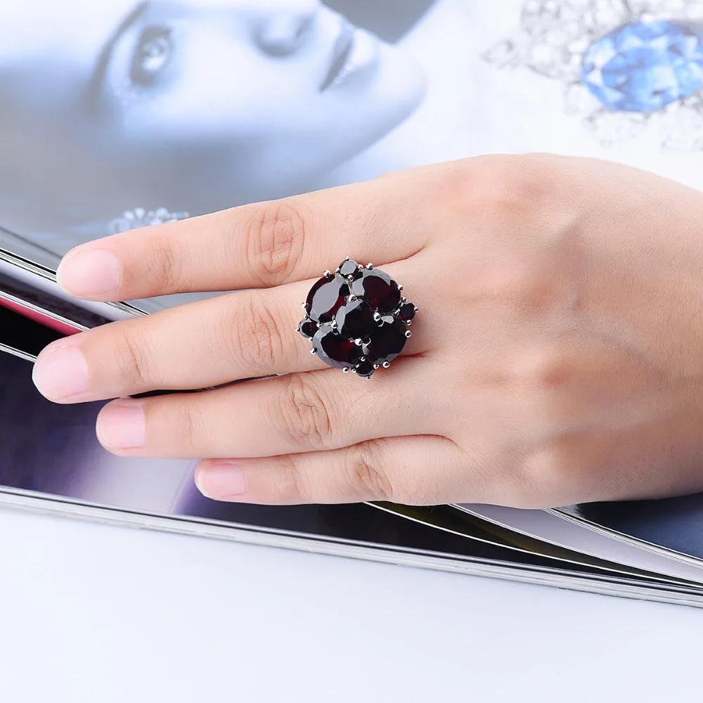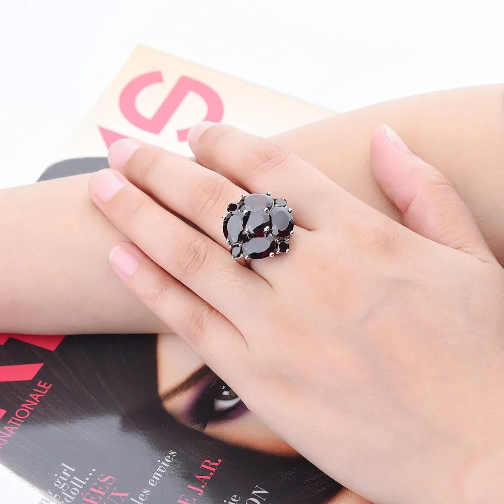 Hutang Wedding Ring Natural Gemstone Black Garnet Solid 925 Sterling Silver Fine Fashion Stone Flower Jewelry For Women's Gift