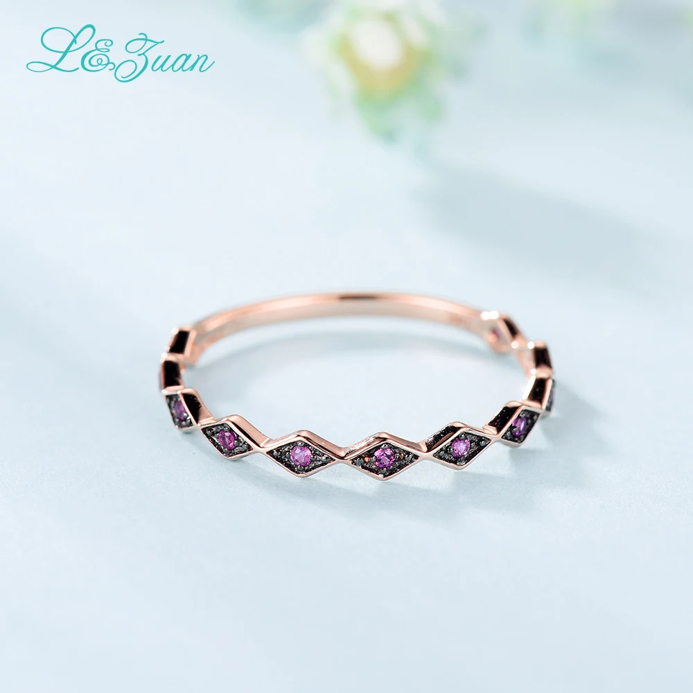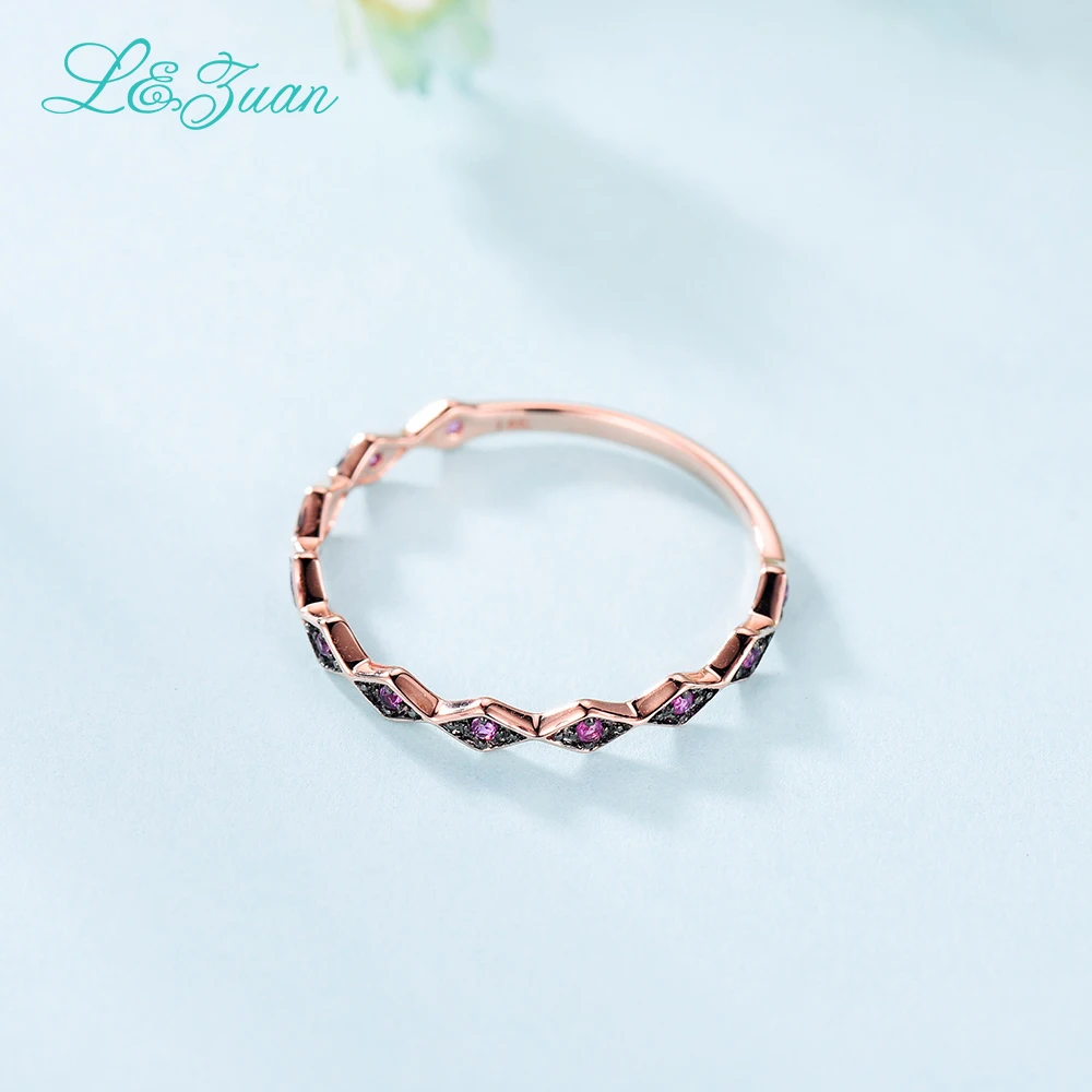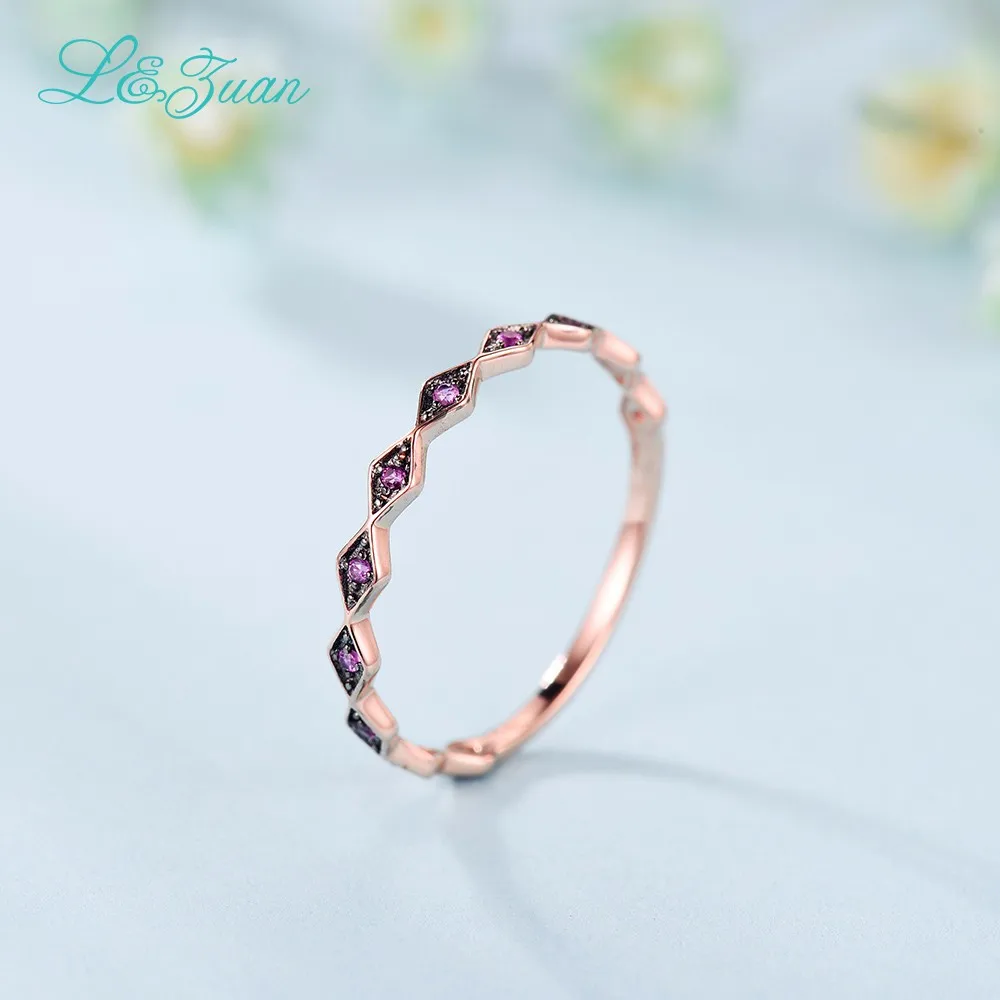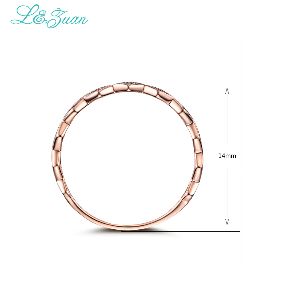 I&zuan 14K-Gold Ruby Womens Rings Trendy 0.063ct Natural Red Gemstones Prong Setting Wave Rose Gold Wedding Fine Jewelry