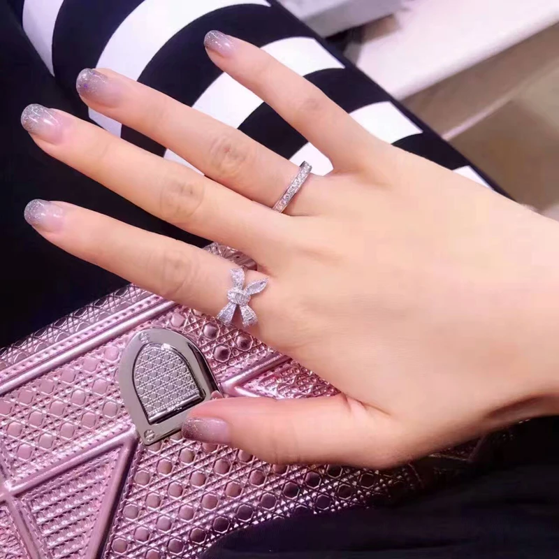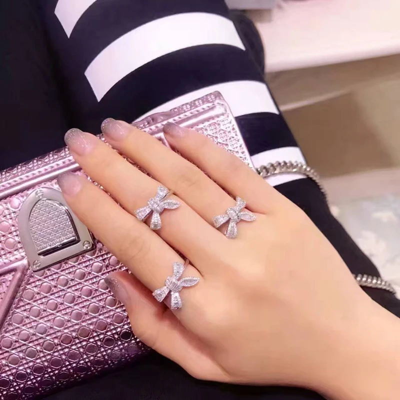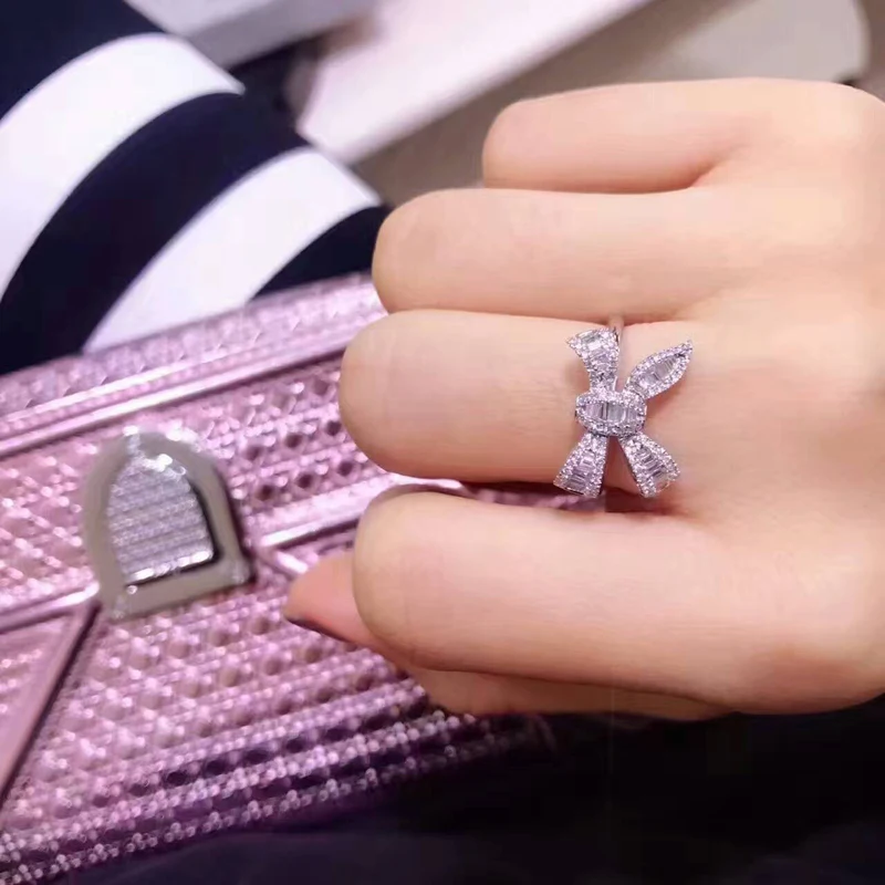 Ring For Women 0.362CTW 18k White Gold Round & Baguette Cut Natural Diamond Bowknot Shape Halo Engagement Wedding Ring