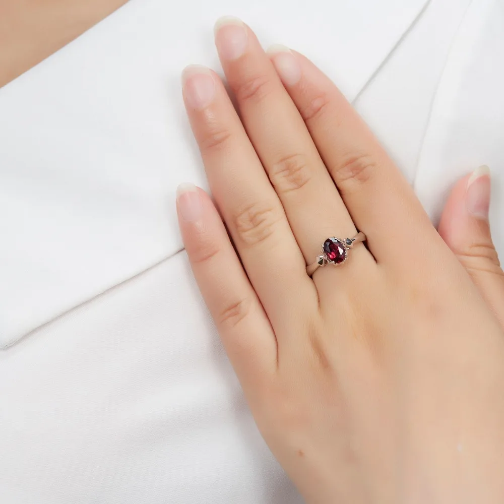 Lohaspie Natural Gemstone Rhodolite Garnet & Diamond Solid 18K White Gold Trendy Engagement Ring Fine Jewelry For Women 2017 NEW