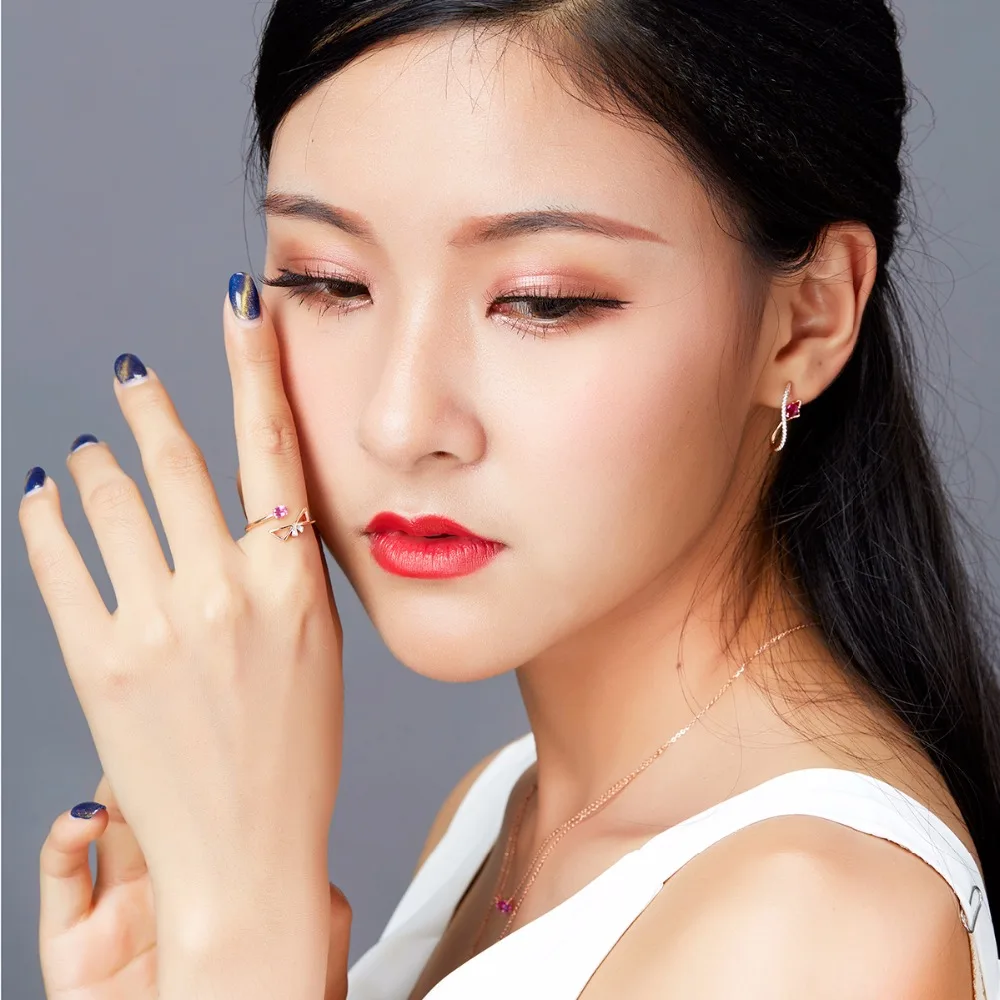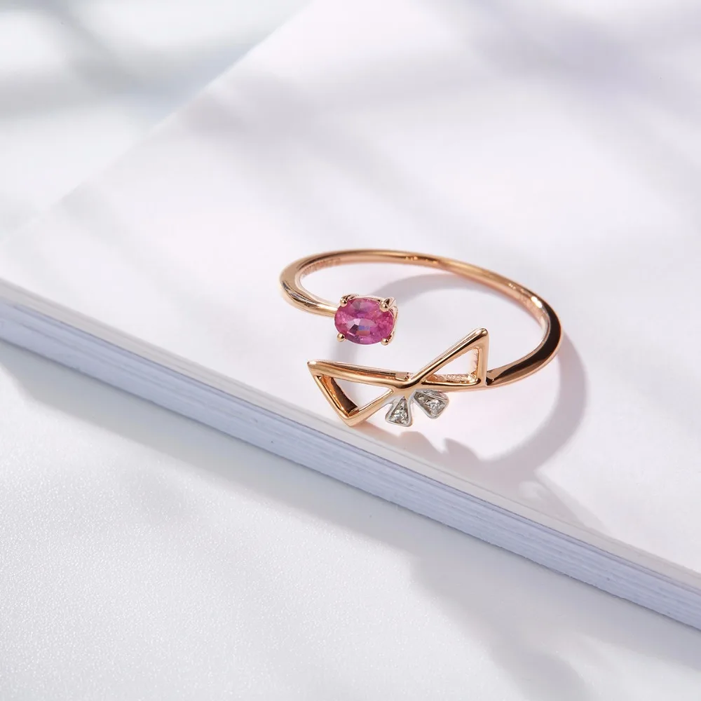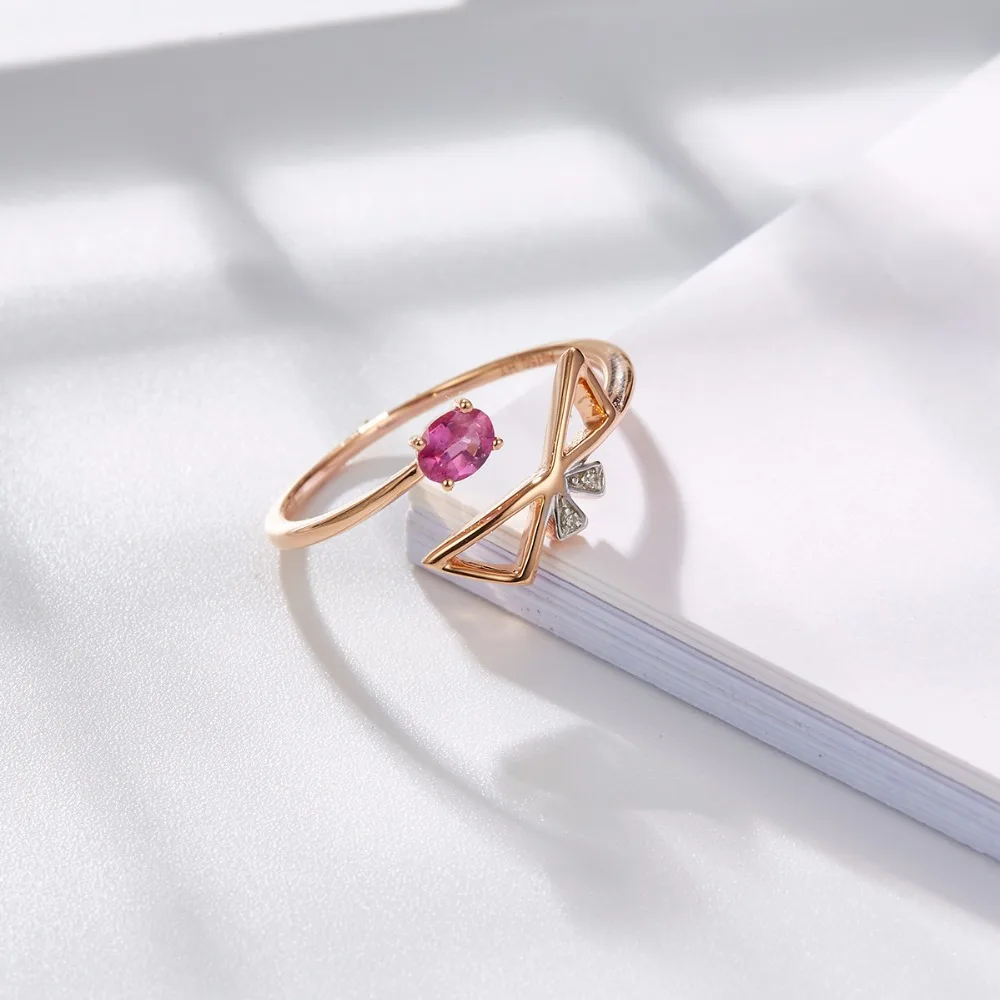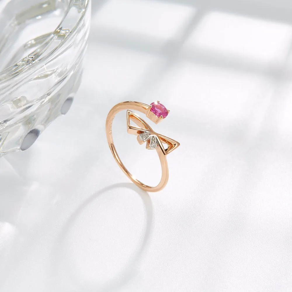 Lohaspie Solid 18K Rose LineEngagement Rings Gold Natural Gemstone Ruby Fine Diamond-Jewelry For Women Online Best Buy Gift