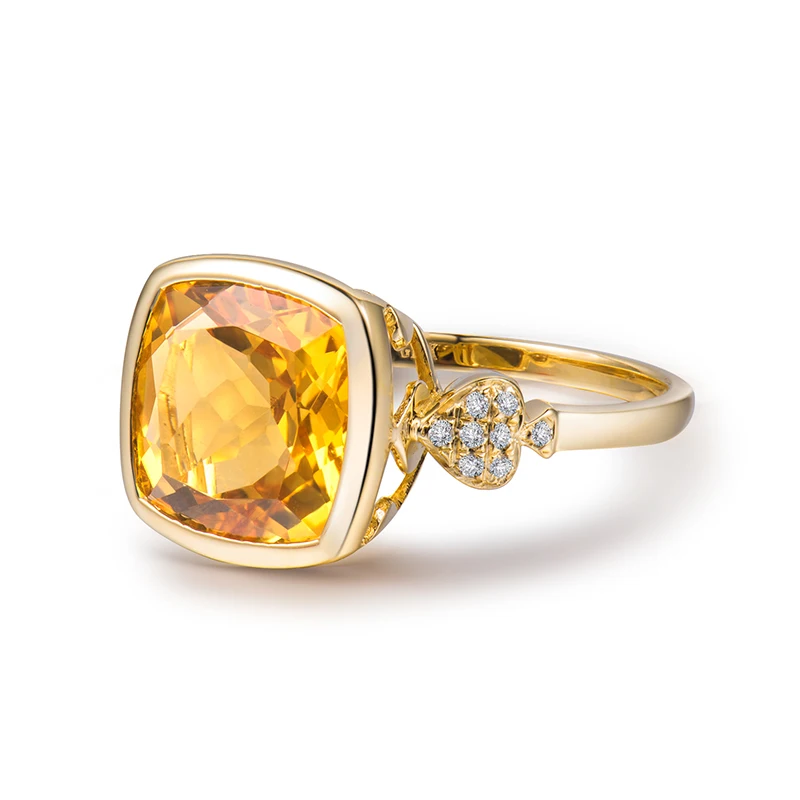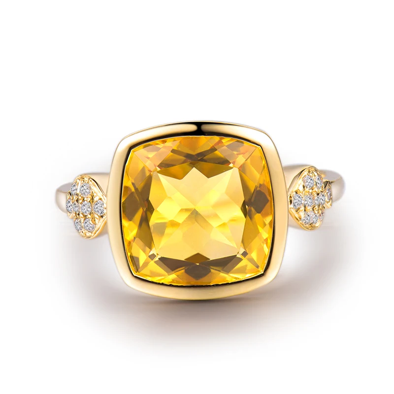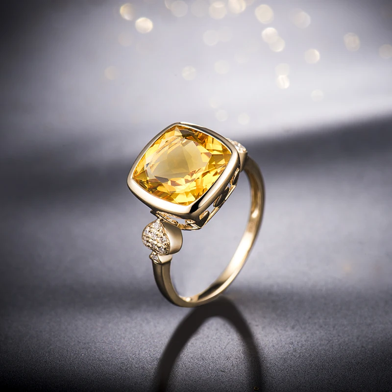Lovely Real 14K Yellow Gold Natural Citrine Ring Fine Jewelry Natural Diamond Anniversary Gift for Women