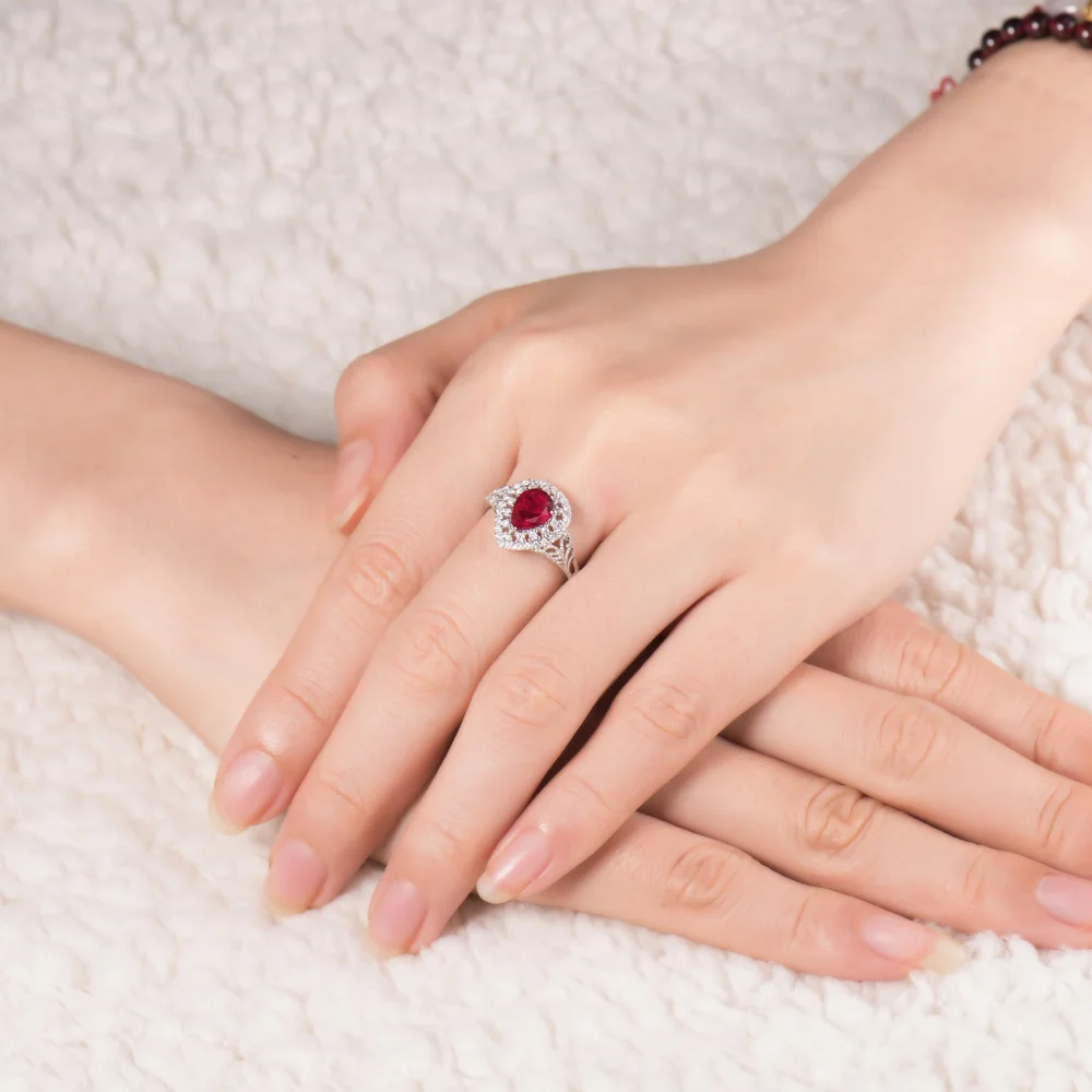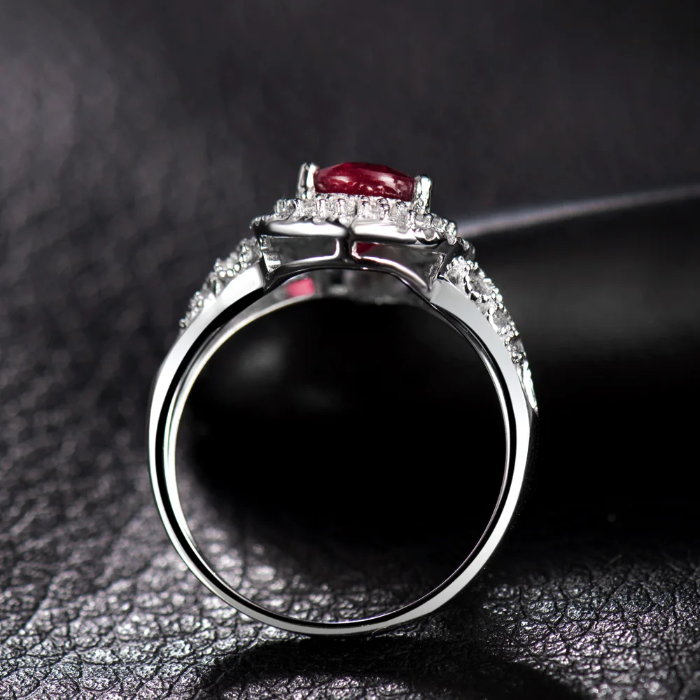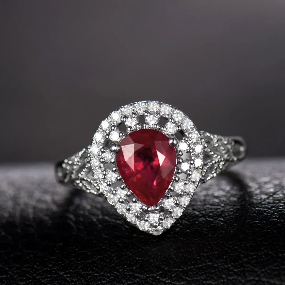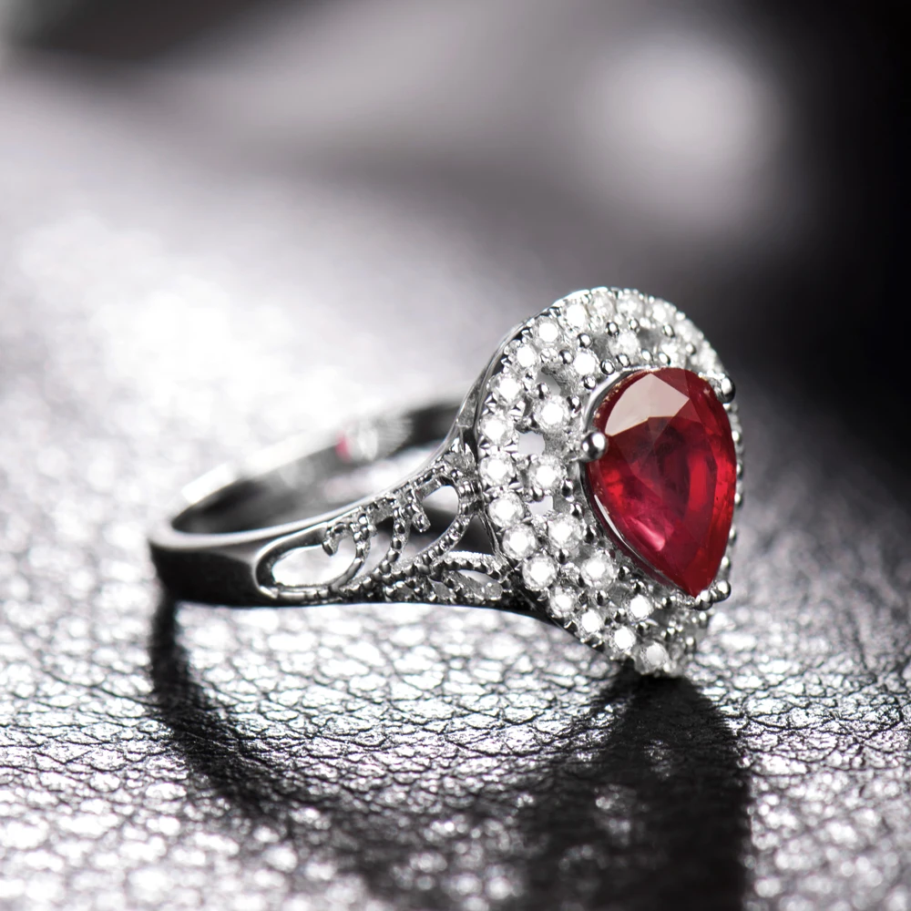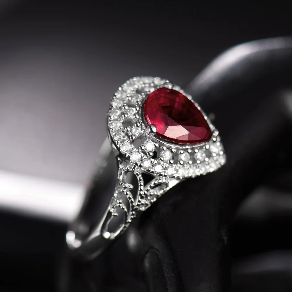 New Arrival Pear Shape Red Ruby Wedding Rings Solid 14Kt White Gold Diamond Fine Jewelry for Women