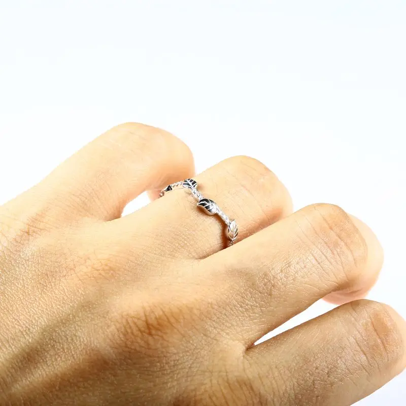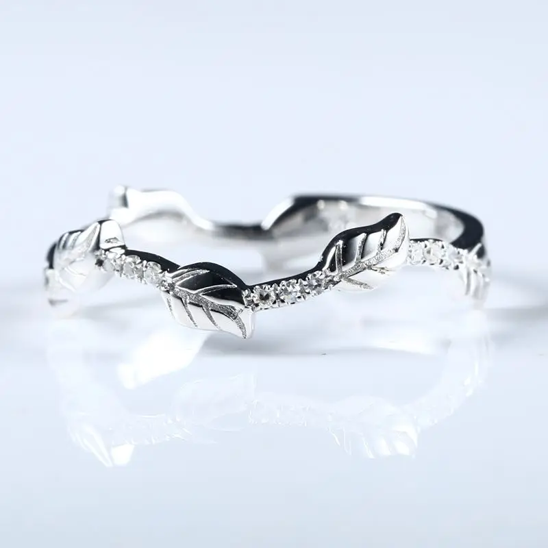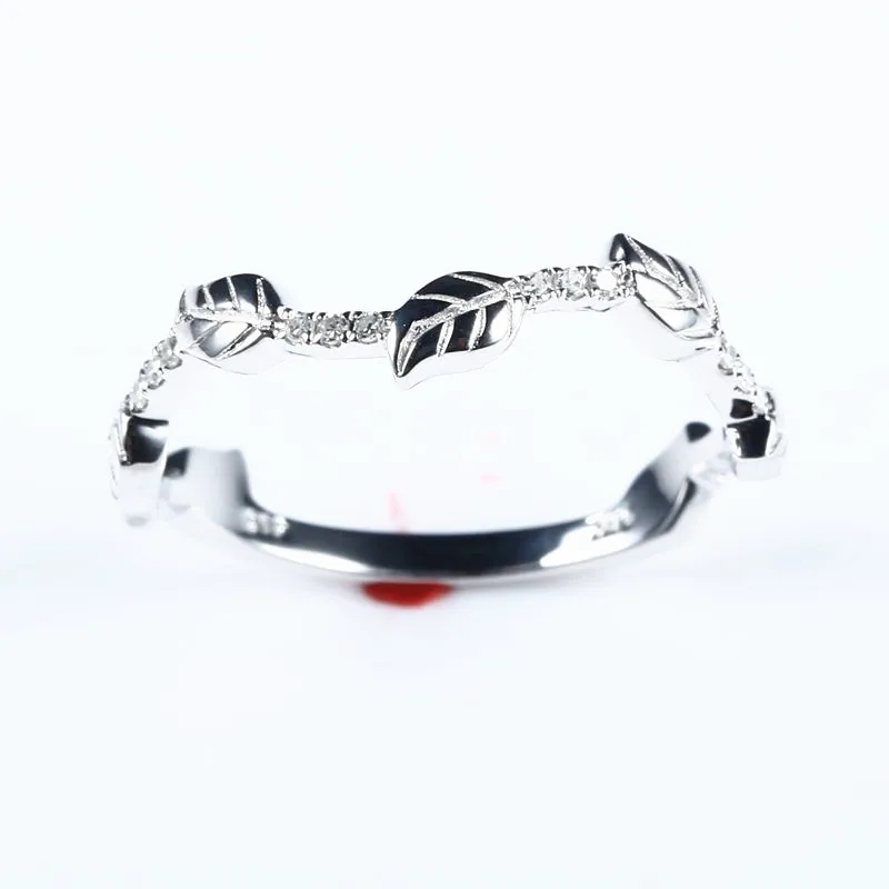 Natural Diamonds Engagement Ring Wedding Band Solid 14k White Gold Leaf Unique Party Fine Jewelry Trendy
