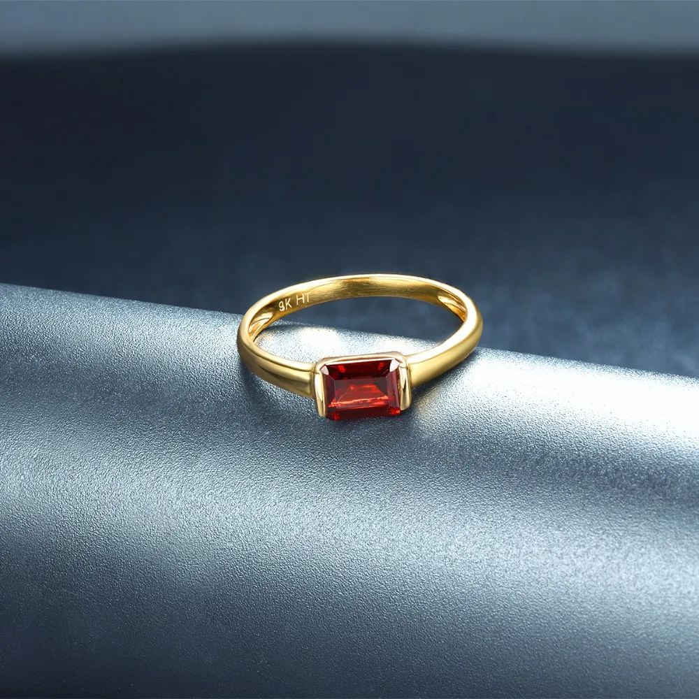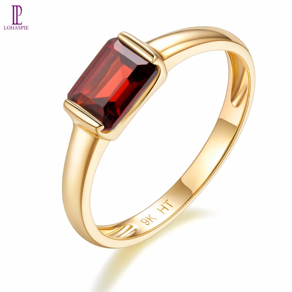 Natural Gemstone Garnet Engagement Ring Solid 9K Yellow Gold Fine Fashion Stone Jewelry For Women's Gift New Arrival Lohaspie