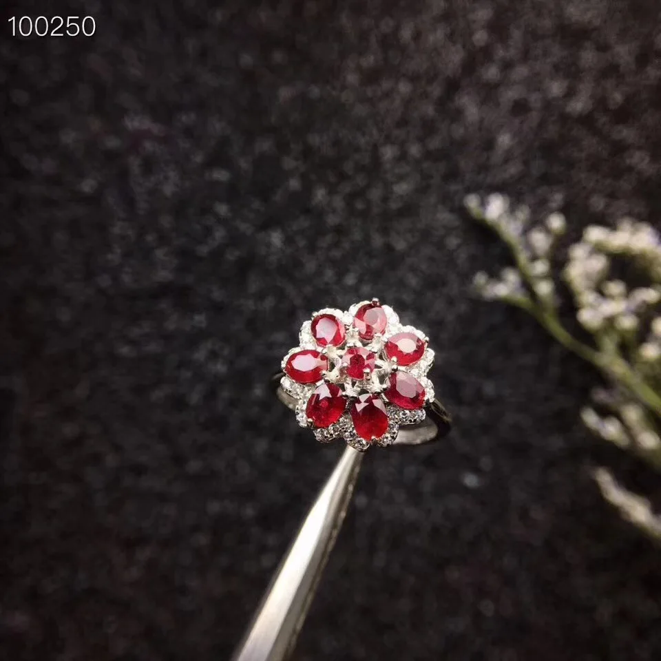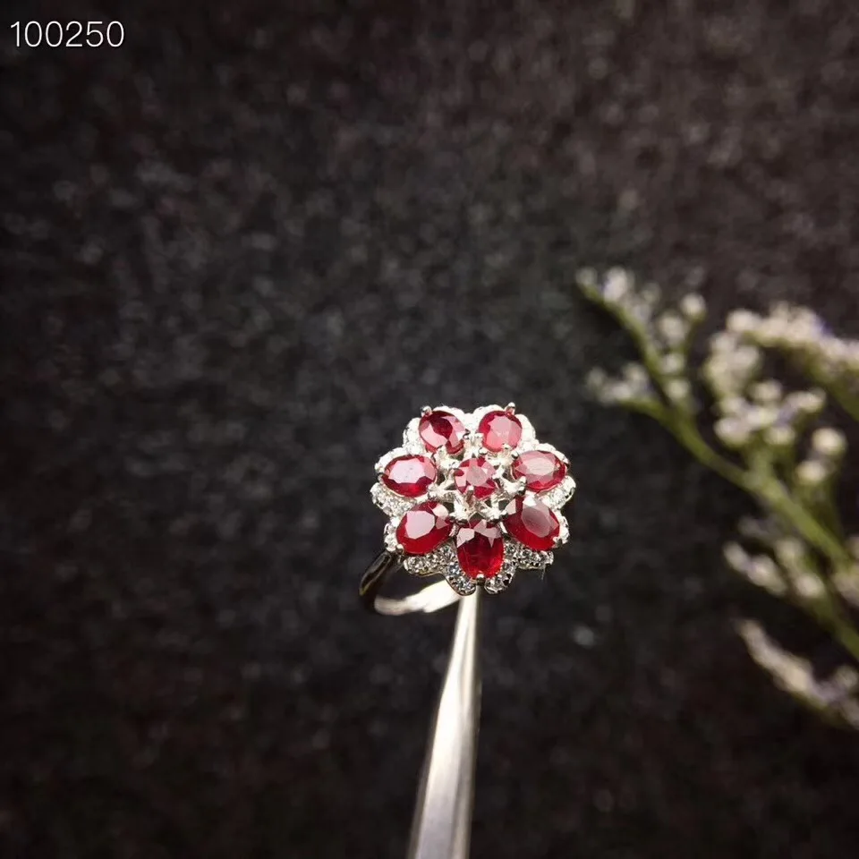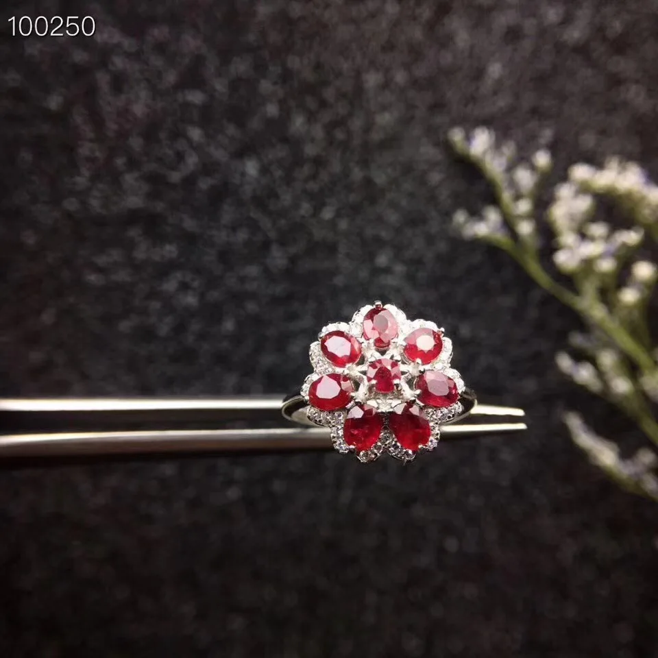 Natural ruby ring Natural and real ruby 925 sterling silver Fine pink gems Flower style ring