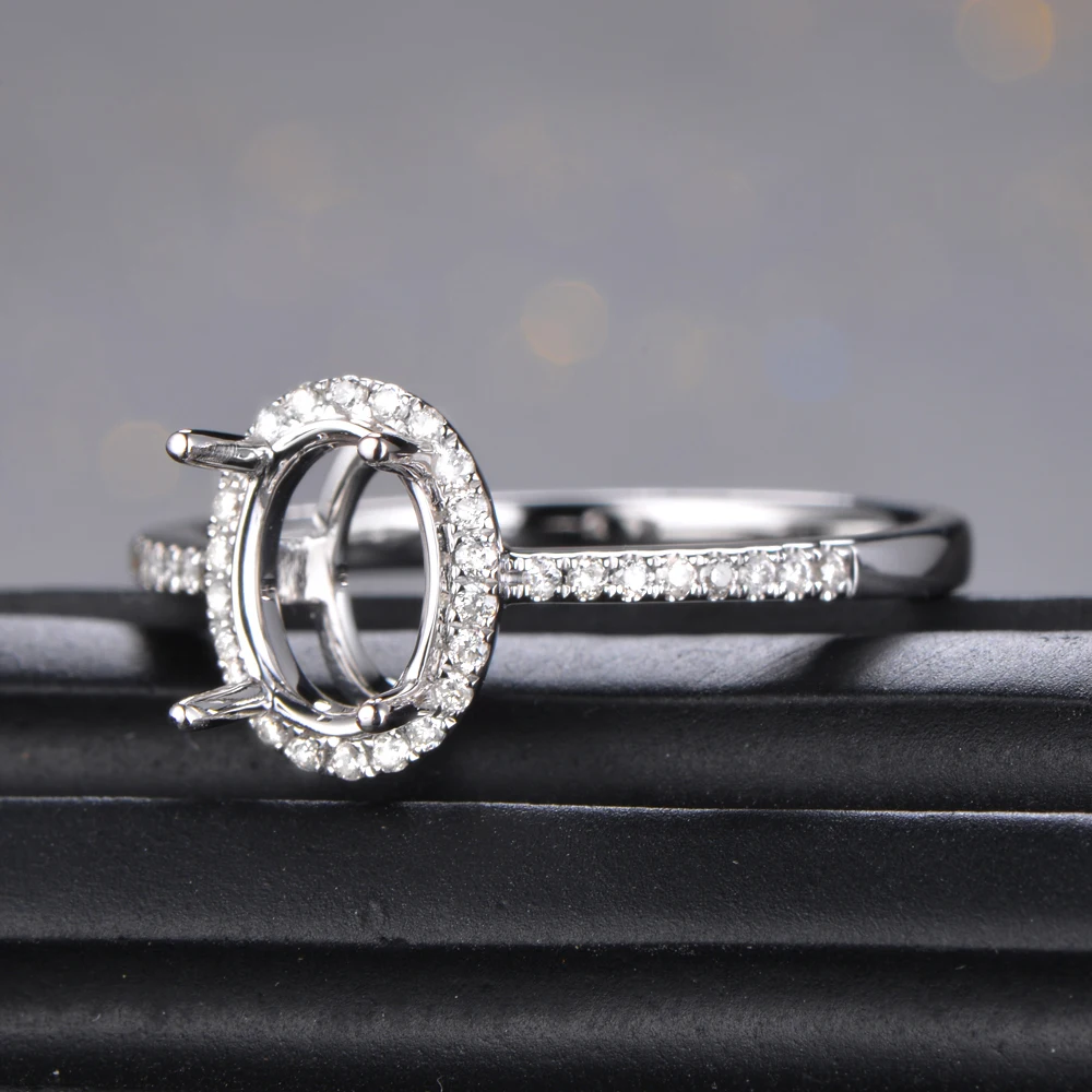 Promotions Oval 5.5x7.5mm 14k White Gold 0.18ct Natural Diamonds Engagement Ring