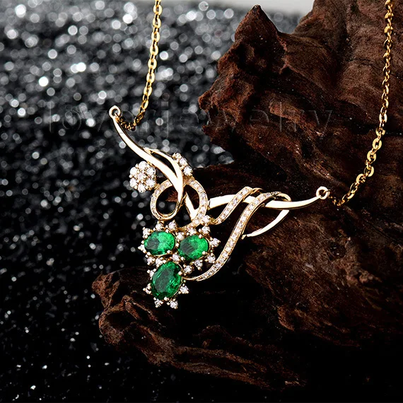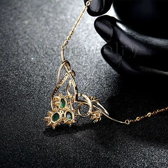 Queen Style NECKLACE WOMAN FASHION Emerald Necklace Angel With Natural Diamond 18Kt Yellow Gold WP052