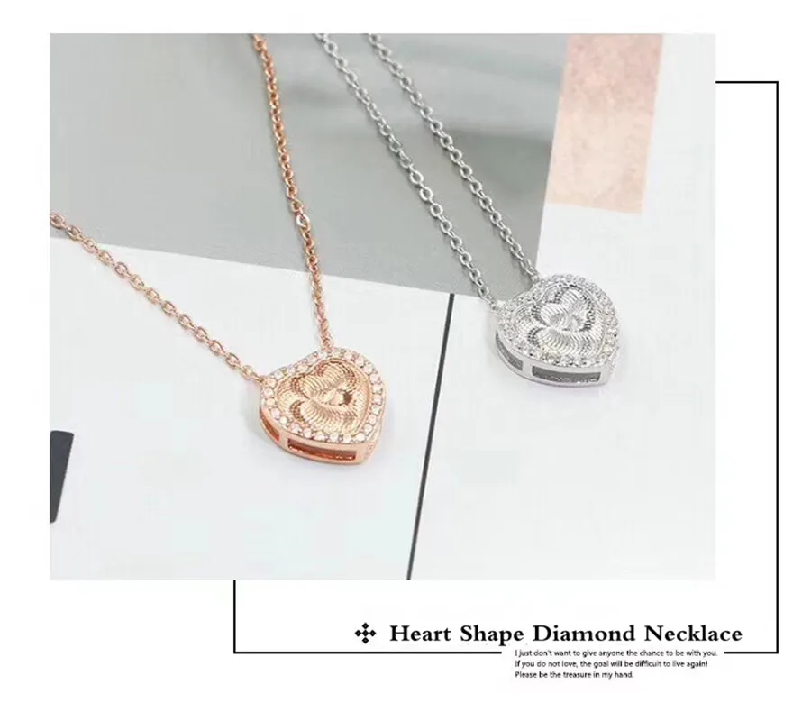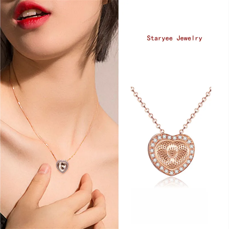 Real Solid 18K Au750 Rose Gold VS H 0.09CT Natural Diamond Heart Shape Chain Pendant Necklace For Women Jewelry Engagement Gift
